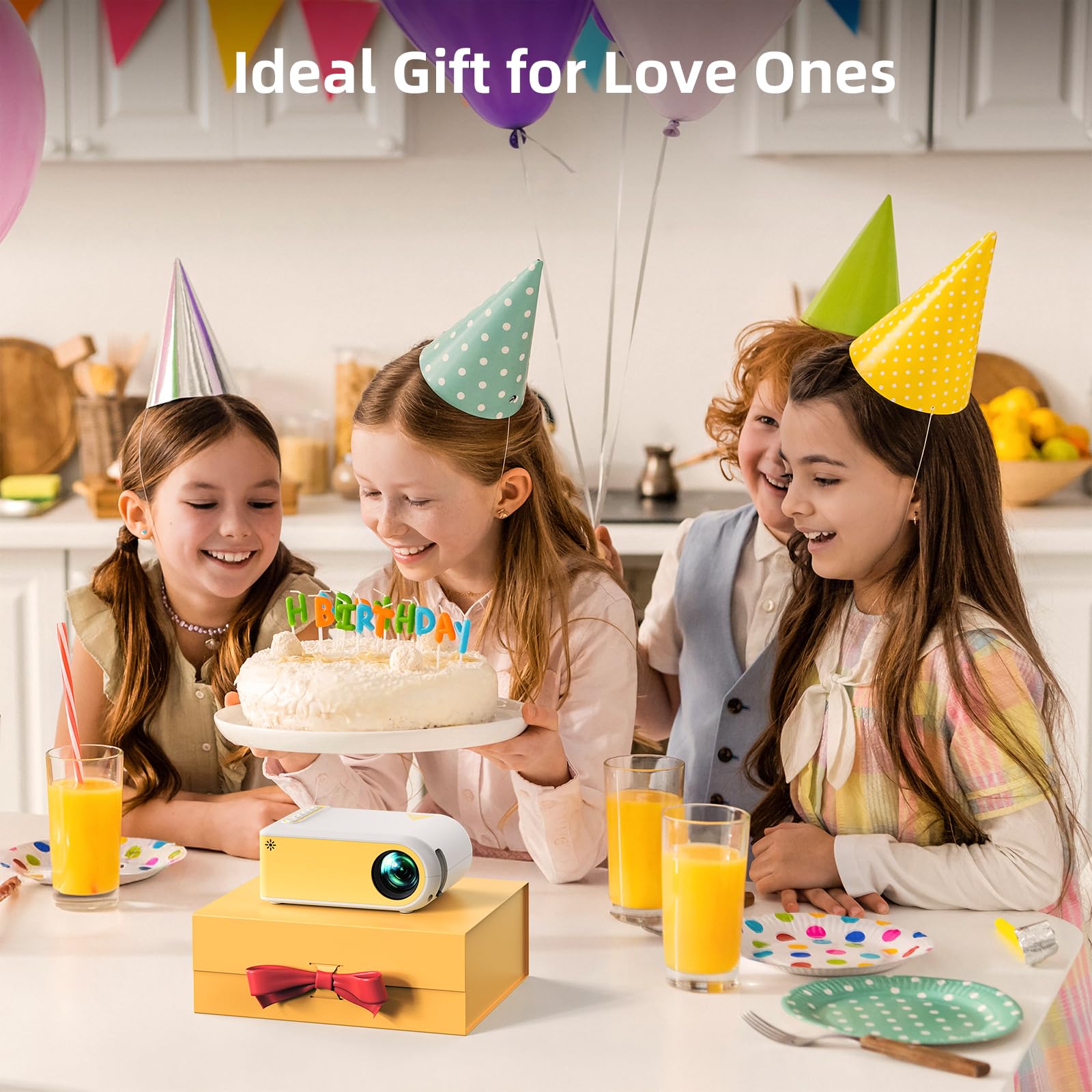- 【Great Gift Idea-Low Noise & Protecting Eyes】Mini projector is a must-have product for kids to watch cartoons and videos. Compared to prolonged screen time on mobile phones and iPads, a screen larger than 60 inch would help children to reduce eye strain, protect children vision and encourage healthy viewing habits. With efficient heat dissipation function to effectively reduces the fan noise to lower 30dB, your child would have a cozy night with this mini projector.