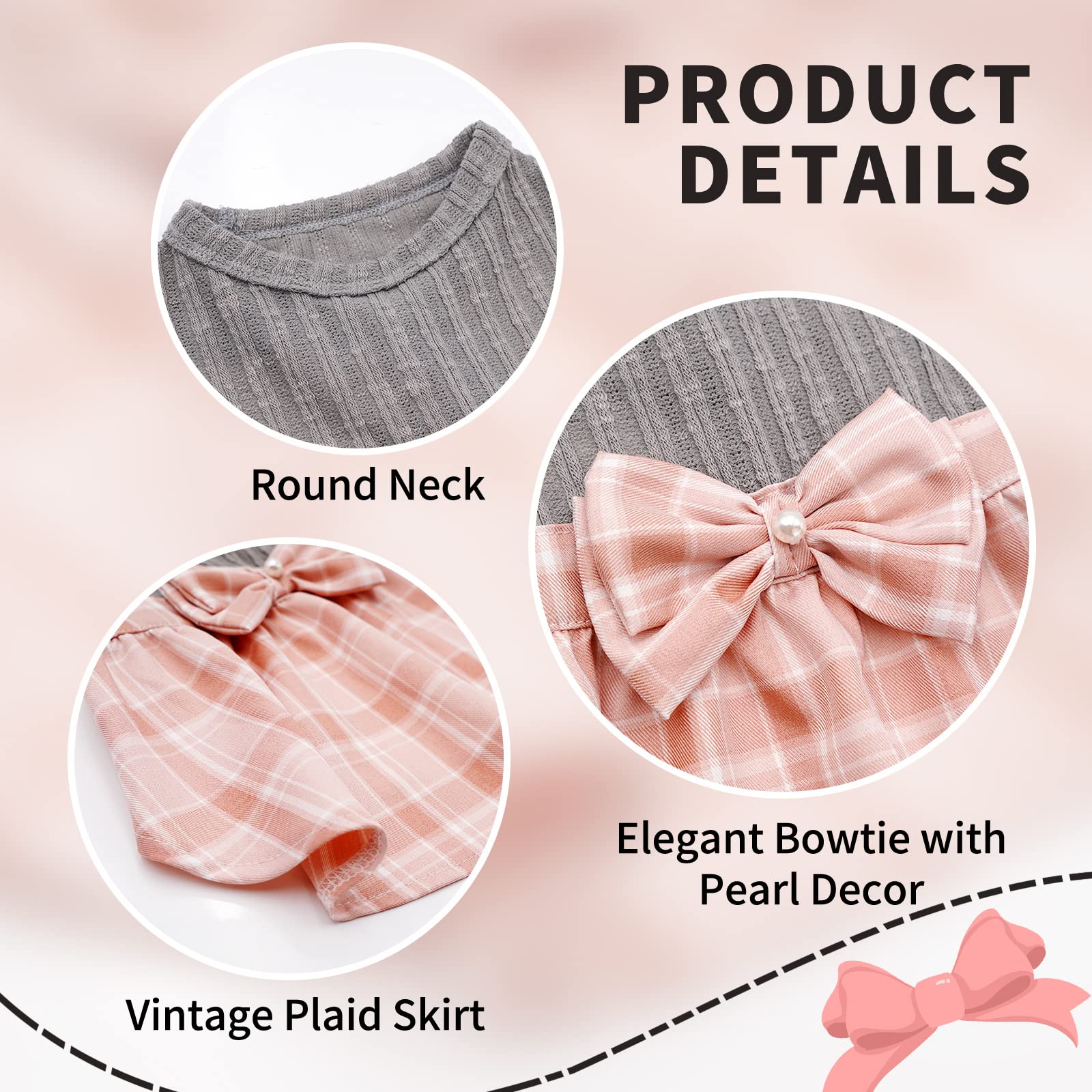 KYEESE Dog Dress Plaid with Bowtie Small Dog Sweater Dress for Fall Winter Vest Shirt
