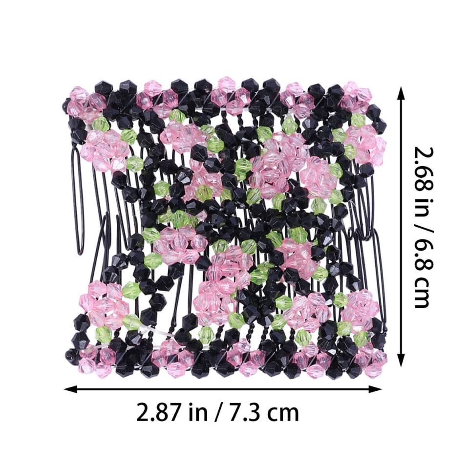 LALAFINA 3pcs Double Clips Hair Combs Adjustable Elastic Hair Clips Stretch Beaded Hair Combs Pink Rose Shaped Hair Accessories for Women Girls