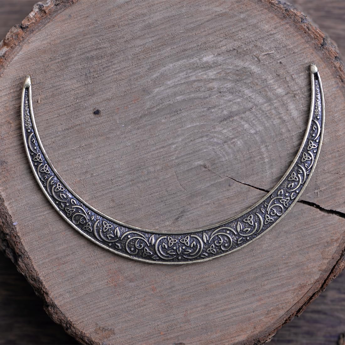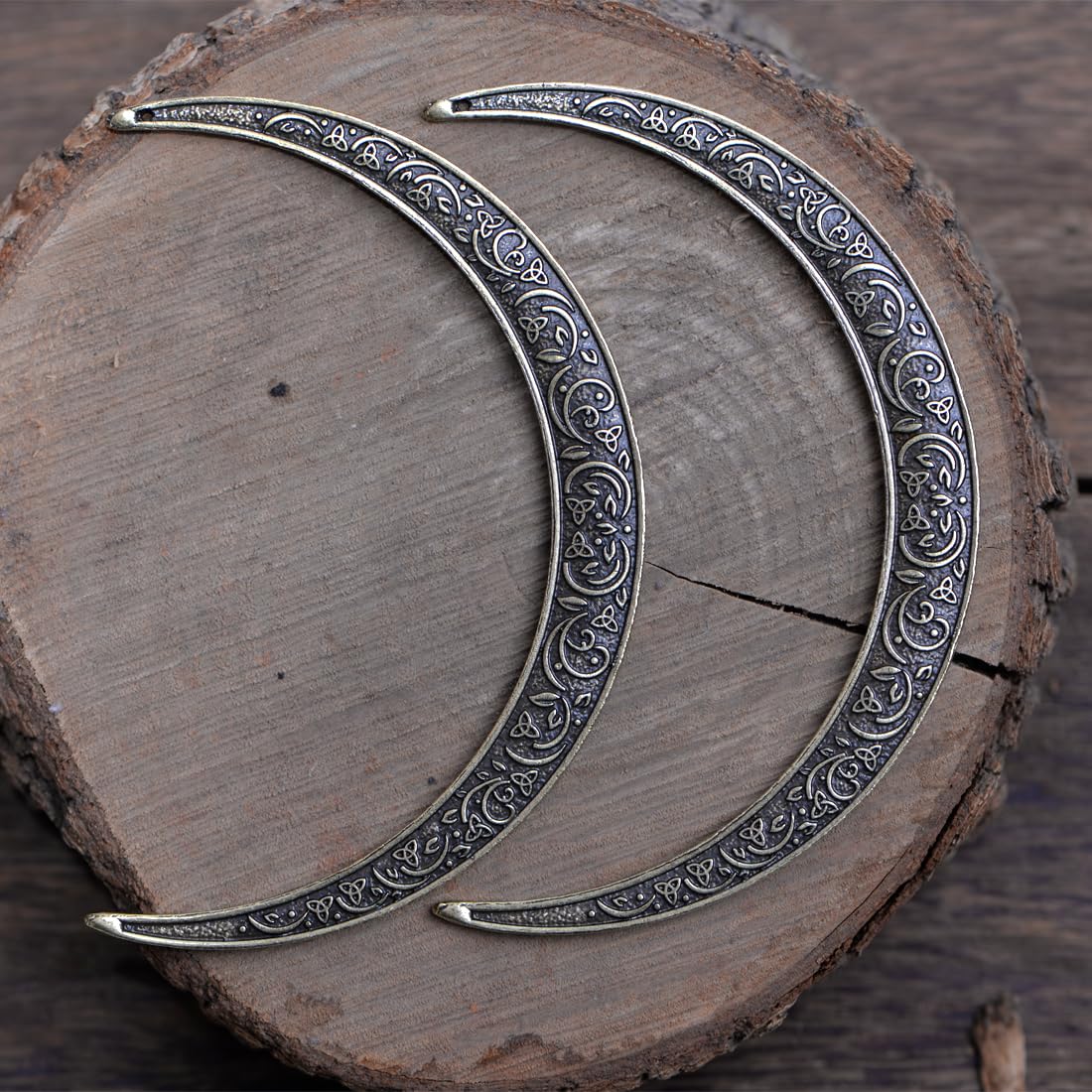 - Appearance Design: The width of the top ends of this Moon Hair Pin is 10 centimeters, featuring a loose and comfortable design suitable for various hairstyles and occasions. It is adorned with Viking and Knot festival patterns, adding a unique cultural charm to the headpiece, making it more eye-catching and exquisite.