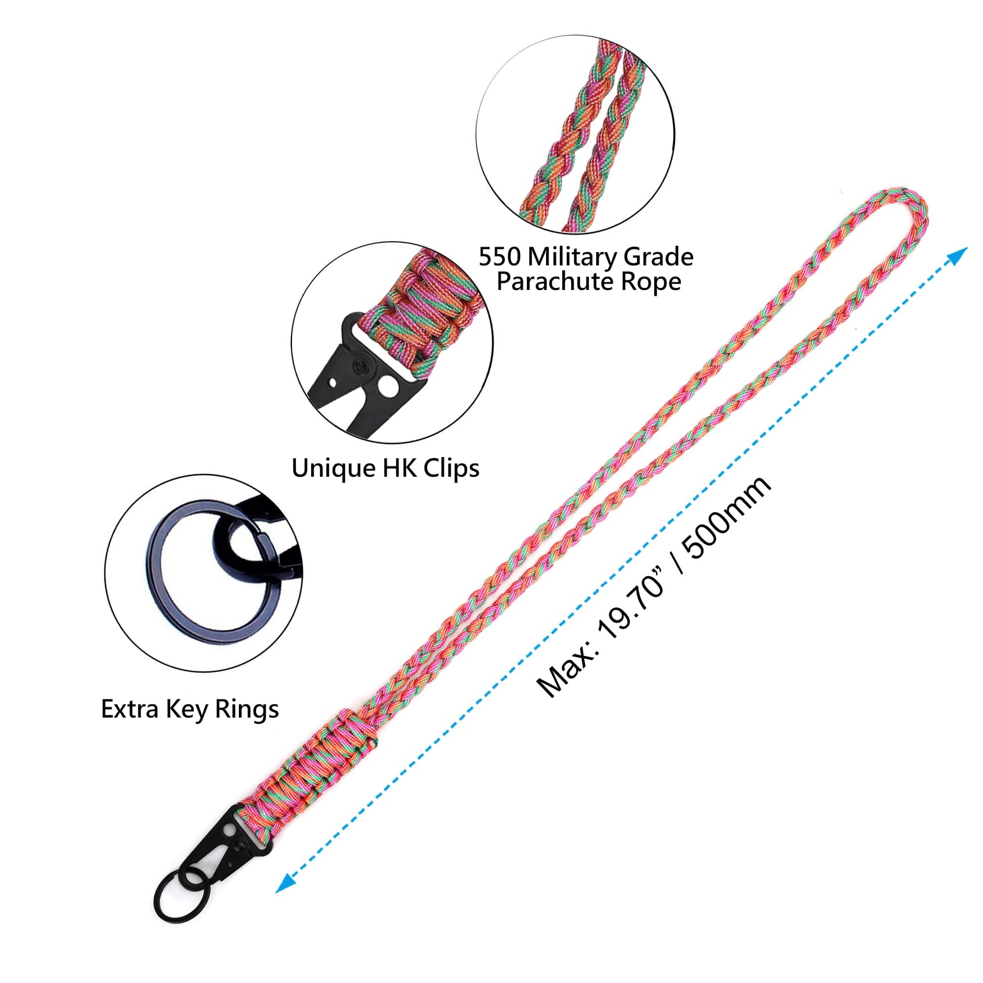 - Strong & Durable: Heavy duty neck paracord lanyard keychain is made of military grade braided nylon paracord, sturdy and durable, comfort and soft to wear, not easy to wear or break, and suitable for your long-term use, The woven braided is a parachute cord that can support up to 300 pounds.