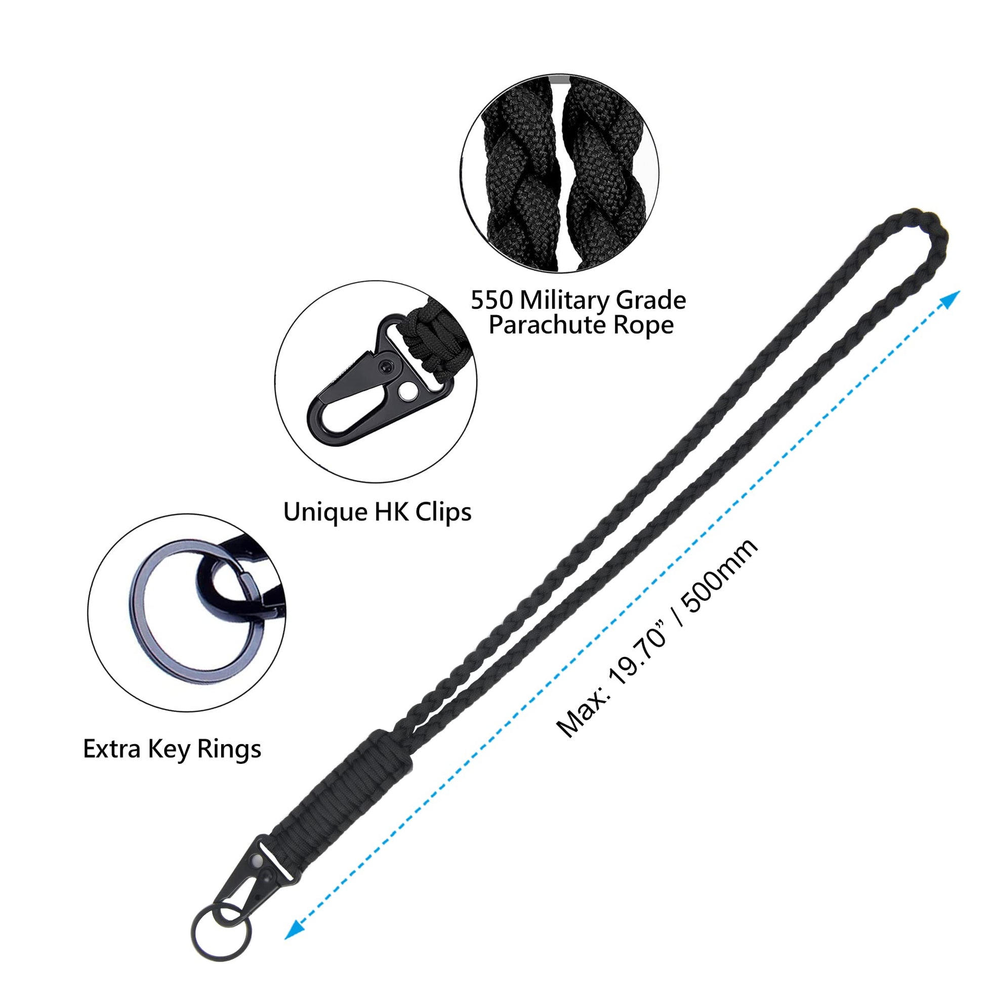 - Strong & Durable: Heavy duty neck paracord lanyard keychain is made of military grade braided nylon paracord, sturdy and durable, comfort and soft to wear, not easy to wear or break, and suitable for your long-term use, The woven braided is a parachute cord that can support up to 300 pounds.