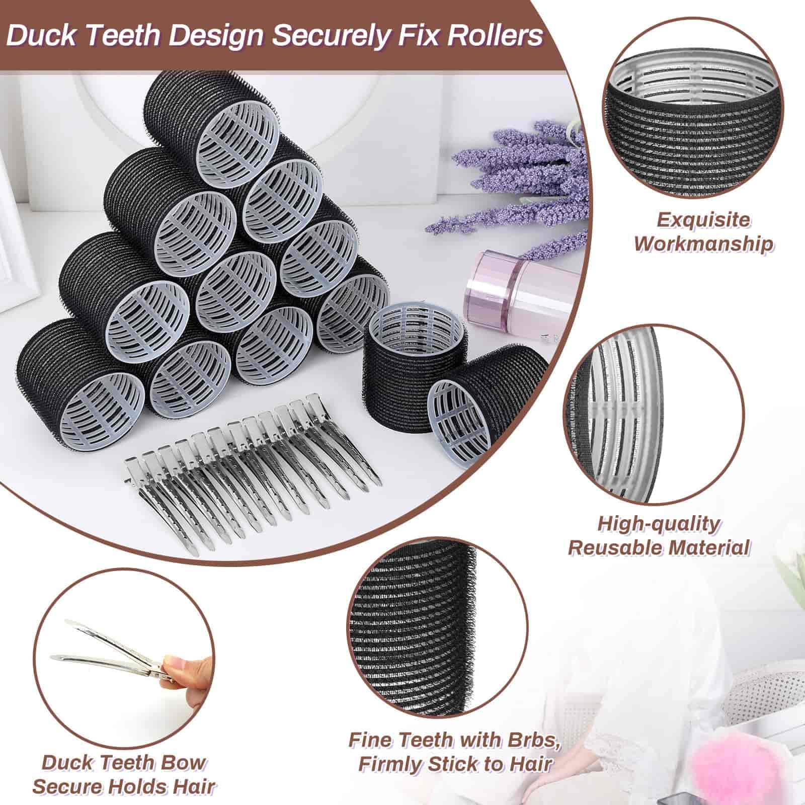 Details: This hair roller set comes with 12 pieces of hair curlers in jumbo size, and large sizes creating charming curls, lift, and volume. These curlers for hair are great for medium and long hair volume and can help you achieve a salon-grade style without having to leave home.