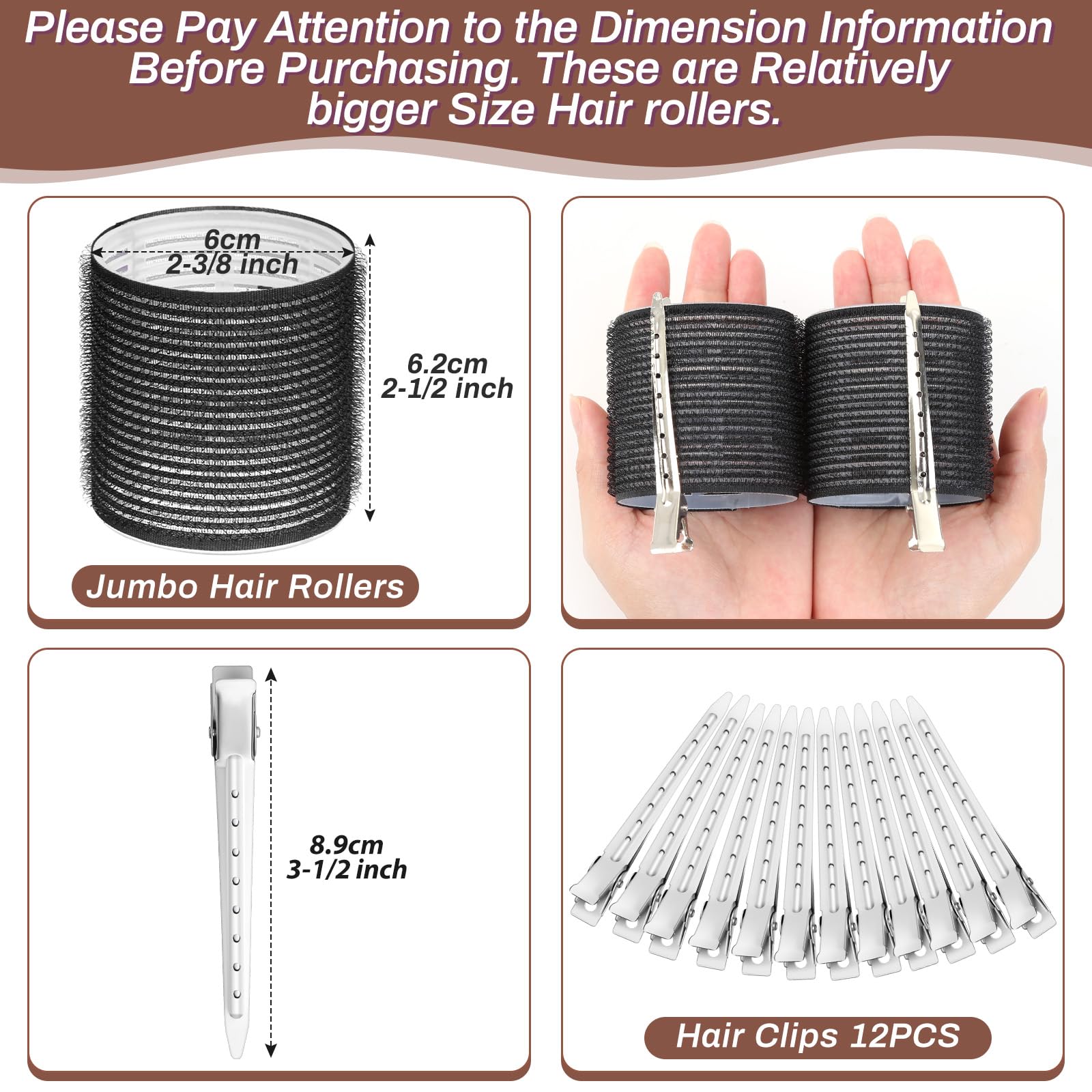 - Jumbo Hair Roller Set: The rollers hair curlers set comes with 12pcs self-grip jumbo hair rollers curlers with 12pcs hair clips for styling long hair bangs volume. These jumbo-size hair curlers are NOT suitable for short hair, fine hair, or very hard hair conditions. IMPORTANT NOTES: The hair clips are well-packed inside the hair rollers (They need to be unpacked to see the clips inside). If you do not find it please feel free to contact us