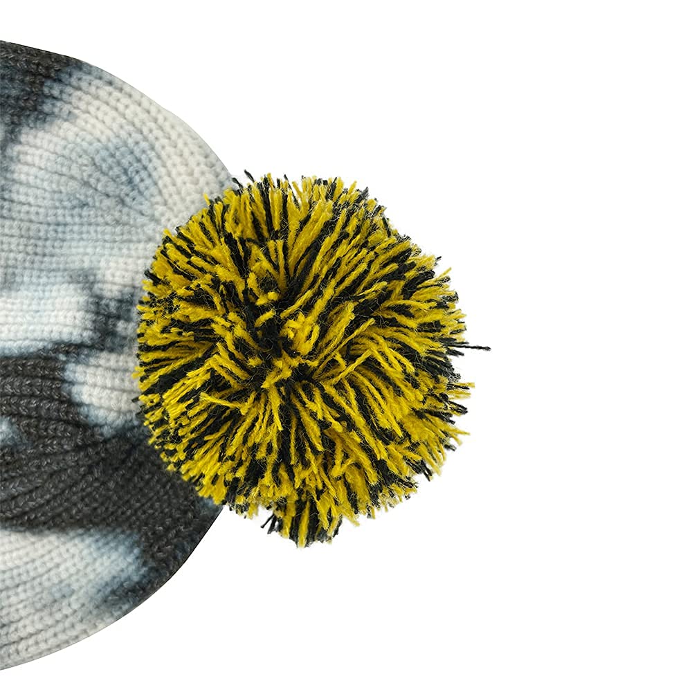 LARTIGUE Womens Tie Dye Knitted Beanie Hat Unisex Knit Skull Cap Soft Winter Warm Hat with Pom Black