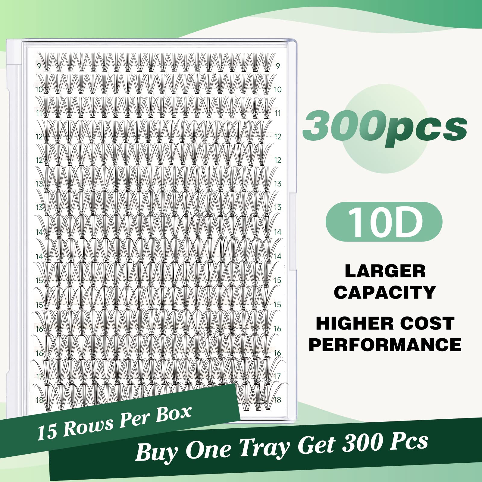 Lash Clusters 300Pcs Individual Lashes 10D 0.1C Curl 9-18MIX Lash Extensions Clusters Lashes Soft&Natural False Eyelashes Individual DIY Eyelash Extension at Home(10D-0.1C,9-18MIX)