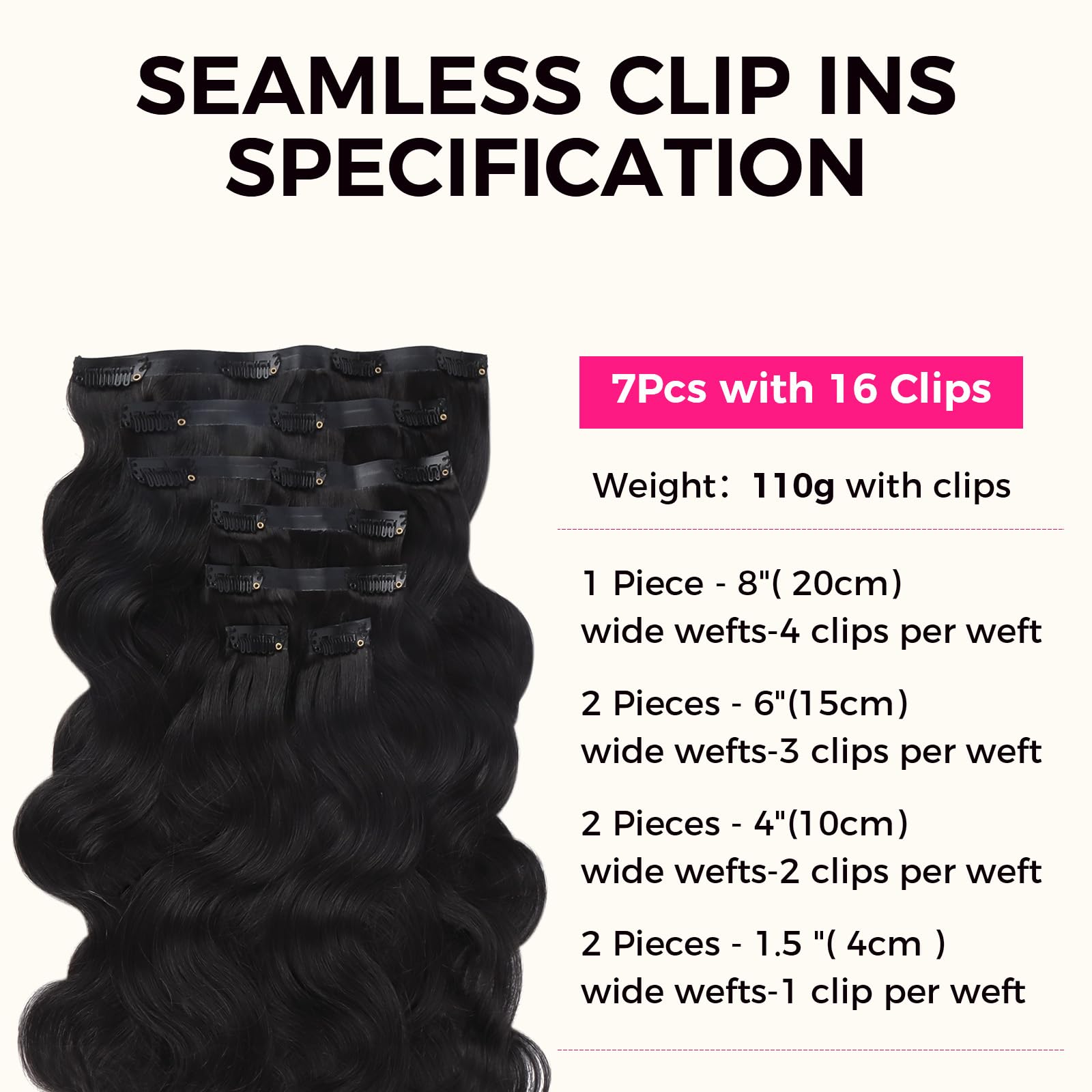 - Lashey Seamless Clip Ins: Our seamless clip in human hair extension has a variety of curves, straight, kinky straight, body waves. We also offer several colors for people to choose from, natural black, jet black, dark brown and ect. Details: 4pcs/7pcs/9pcs/10pcs. Weight and Size Specification: 12 inch-80g, 14-26 inch-110g/150g. You can choose any curved color and size you like.
