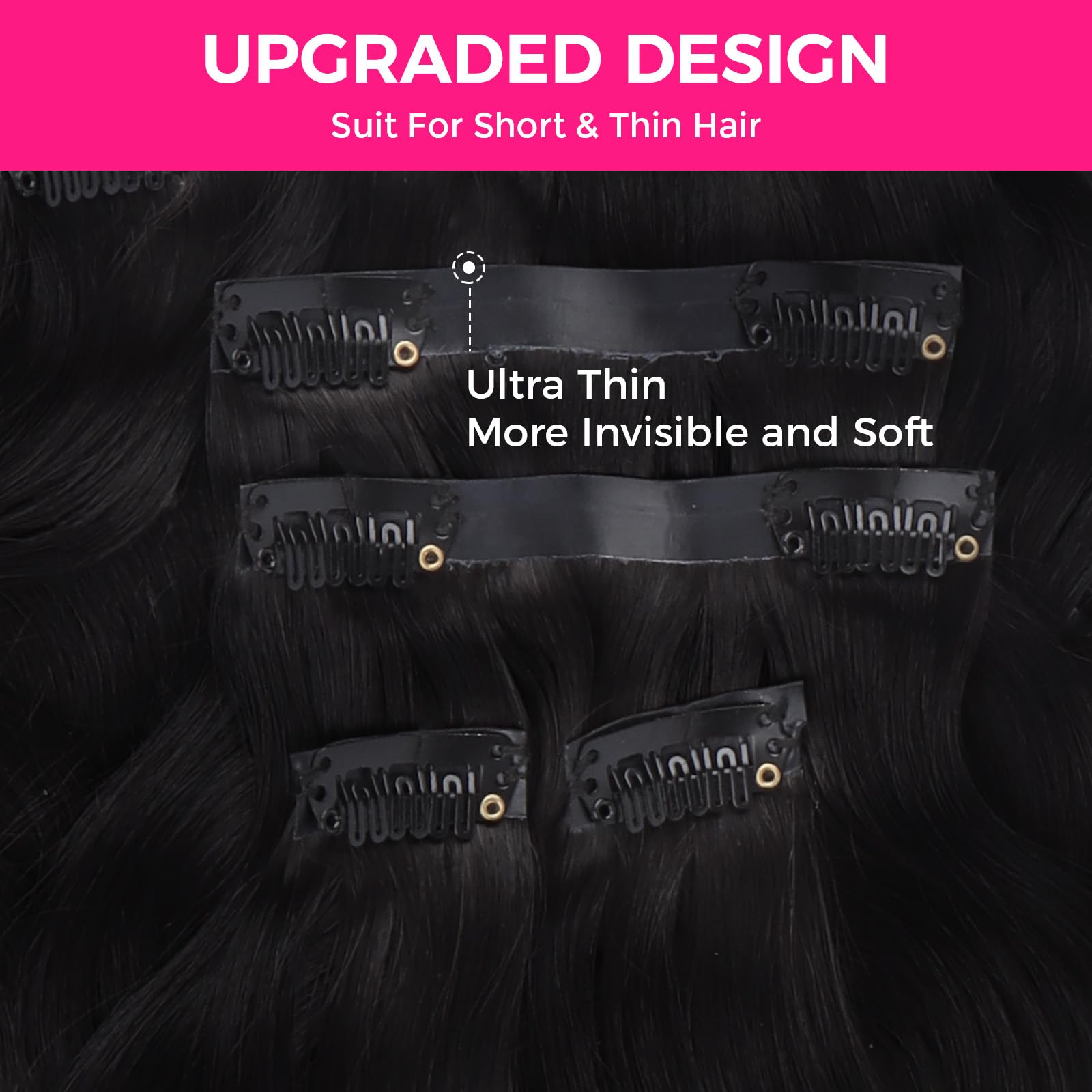 - More Thicker and Dosage Recommendation: Our seamless clip hair extensions use the technology to make sure more hair can be on the PU strip. If you have thick hair, we recommend 1-2 packs to add weight, 2-3 packs to add length. If you have thin hair, we recommend 1-2 packs to add length, 2-3 packs to add weight. With proper care and maintenance, you can enjoy your extensions for months. allowing you to add length, volume and thickness to your hair in minutes.