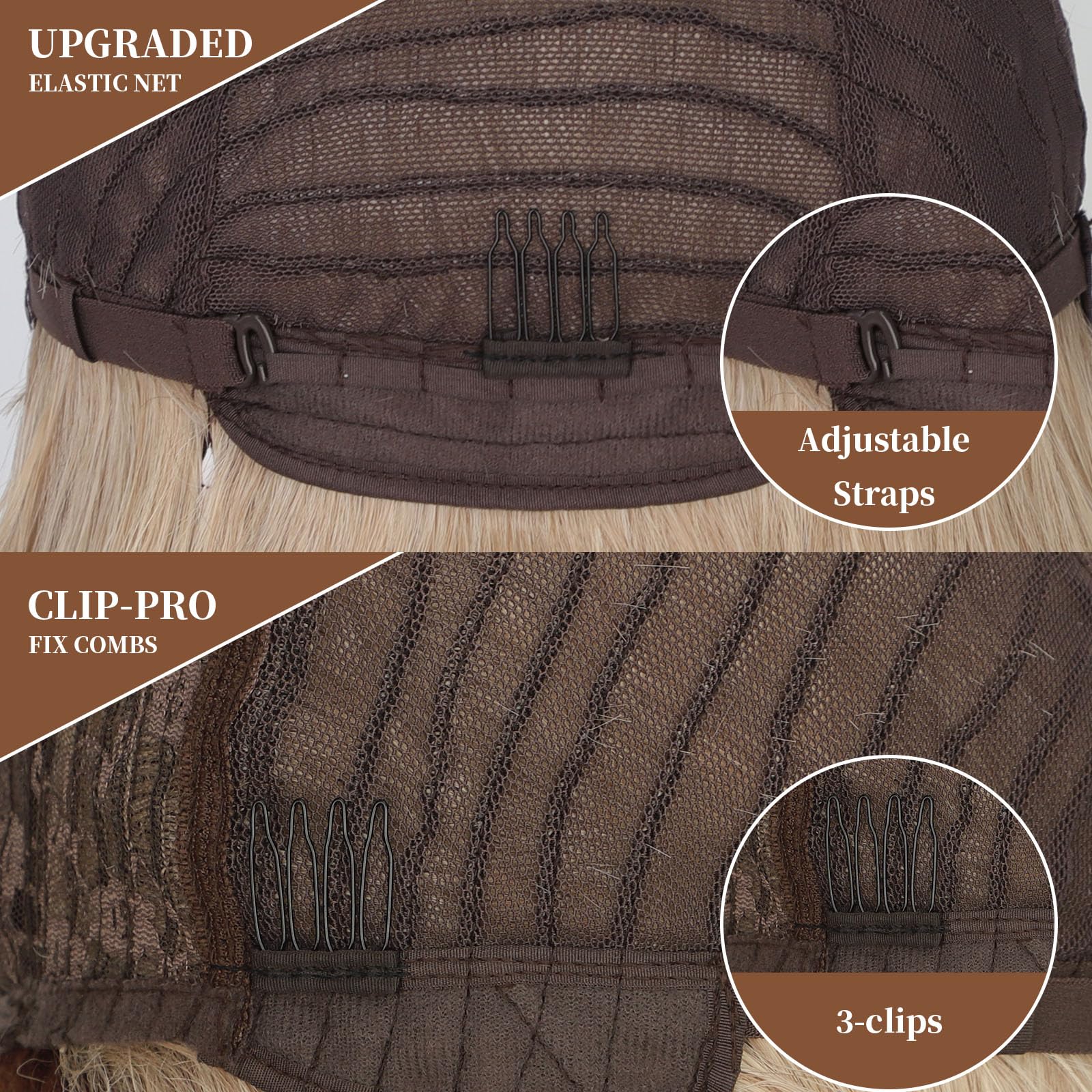 - Comfortable& Breathable Net:The new elastic mesh is breathable and comfortable, not stuffy, and can be used in any season. The 2 adjustable straps make the wig can fit 21.5-22.5 inches head size/shape. The other three clips can hold the wig firmly without falling off easily