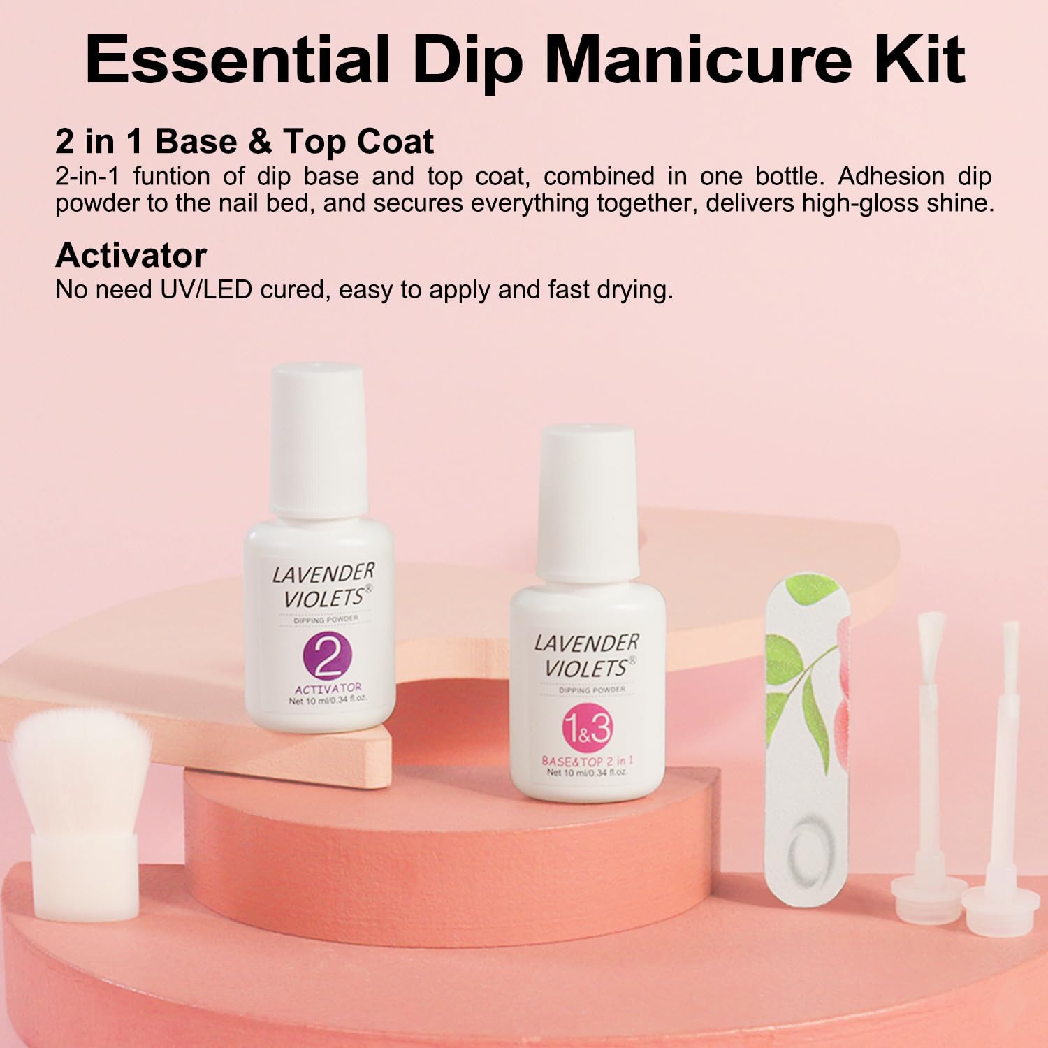 - Create stunning, salon-quality dip nails at home with the Lavender Violets dip powder nail kit; a complete dip nail system comes with everything you need: 6 Colors Powder, 1 Base & Top coat, 1 Activator, 1 Nail File, 1 Nail Sticker, 1 Nail Brush and 2 Replacement Brushes.