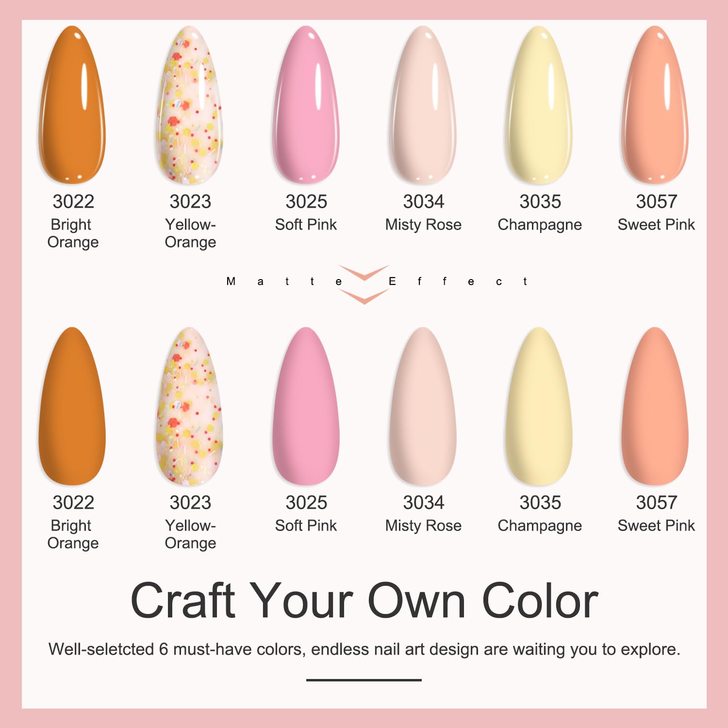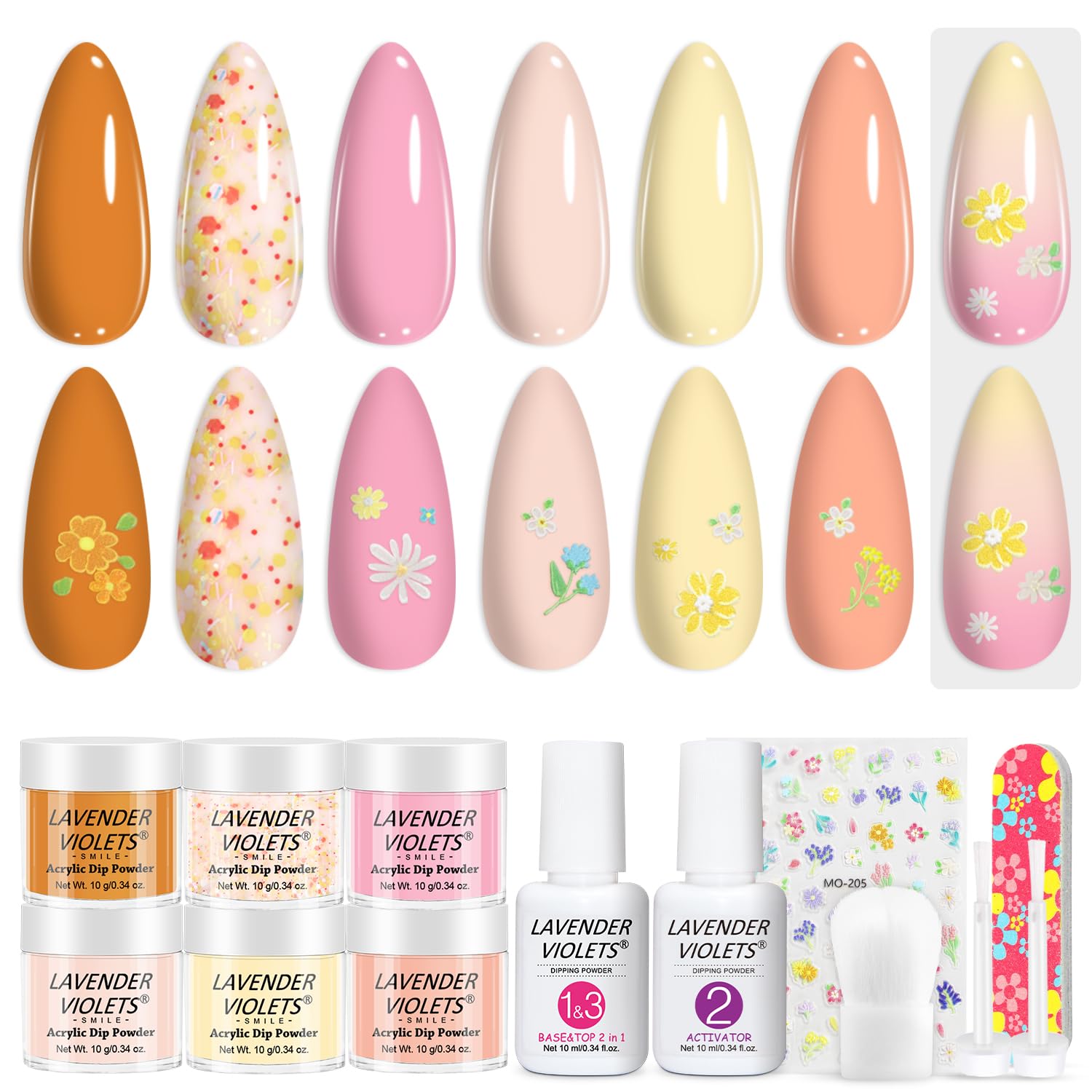 Lavender Violets 13Pcs Dip Powder Nail Kit Starter - 6 Colors Nude Pink Orange Yellow Glitter Dip Powder Liquid Set with Base & Top Coat Activator for Beginners and Professionals DIY Manicure M227