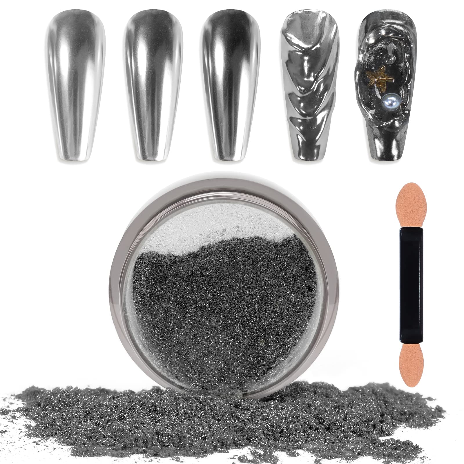 - What You Will Receive: 1 jar of premium chrome powder for nails and a sponge stick (used to apply chrome powder) each package. Each jar contains 1 gram of nail pigment powder for long-time use. And jar was well-sealed to prevent the chrome pigment powder from coming out.