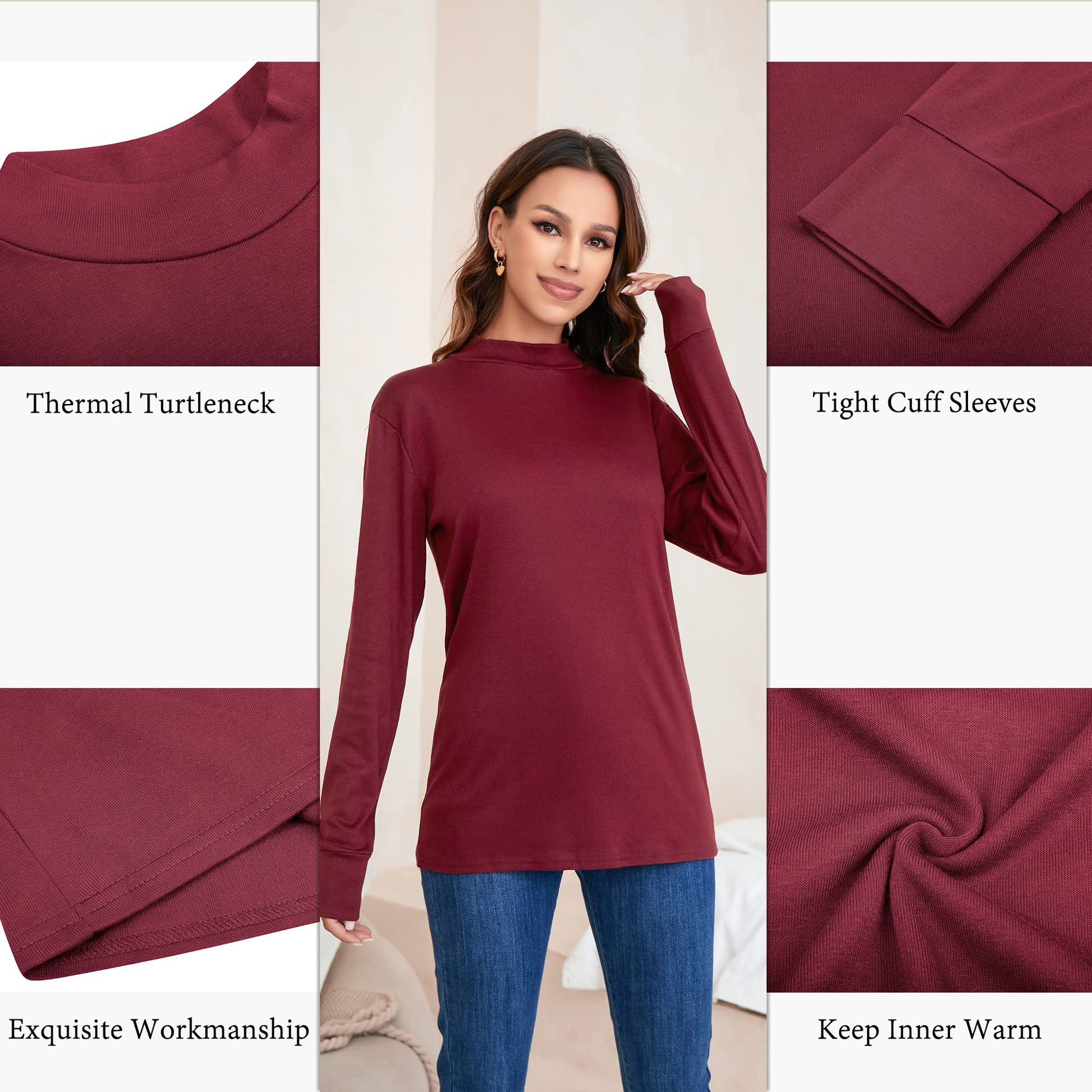 LE VONFORT Long Sleeve Shirts for Women Lightweight Mock Neck Sweater Soft Base Layer Tops Thermal Undershirts Dark Red XX-Large