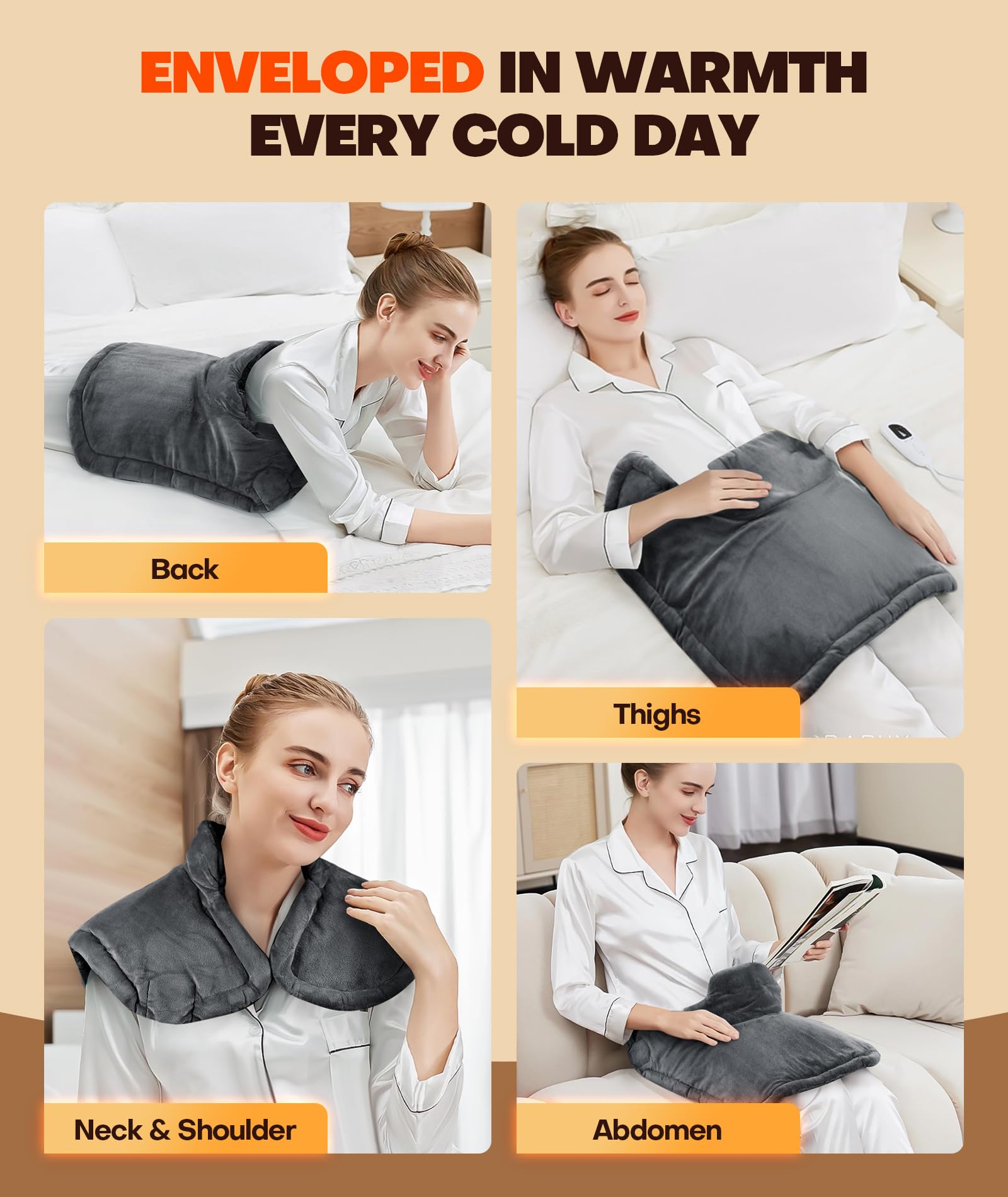 - THE WARMEST GIFT FOR YOUR LOVED ONES! Delivering gentle and therapeutic heat, this heating pad is a lifesaver for tension, aches, cramps and stiffness in your upper back, trapezius, neck and shoulder blades, and more. We thoughtfully added a greeting card as a bonus, our heating pads are the perfect gifts for men/mon/wife/dad/women on Mother's Day, father's day, birthday and Christmas. If you don't like the heated pad, no need to go through the hassle of return, contact us for the solution.