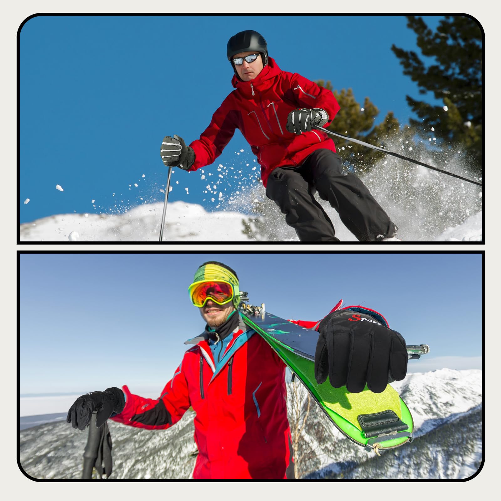 - Waterproof and Warm: these insulated gloves for snowboarding are mainly made of polyester, comfortable to wear and light in weight, with waterproof exteriors and soft plush linings, keeping your hands dry in winter, and the palms are made of PU material, non slip and not easy to tear, bringing you a pleasant experience