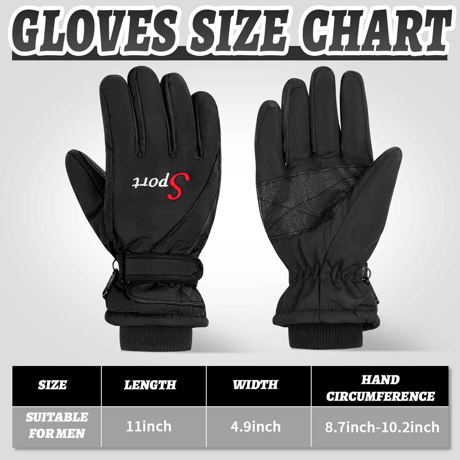 - Adaptable Sizing: waterproof ski gloves come with adjustable straps, which can be adjusted according to the size of the wrist, so most people can use these gloves; Each pair of gloves is equipped with a plastic hook, you can attach the gloves to avoid losing