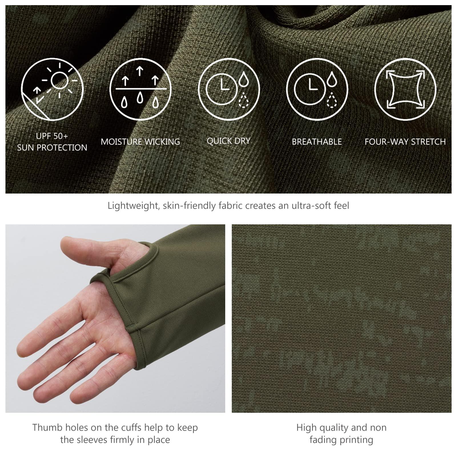- Rating UPF 50+ fabric protects your skin from the harmful UVA/UVB rays. Excellent breathability and wicking, quick drying abilities to help you keep cool and dry during any outdoor activities; The fabric features a textured, waffle weave look for enhanced breathability as well as presents high quality in texture meanwhile it is soft to the touch