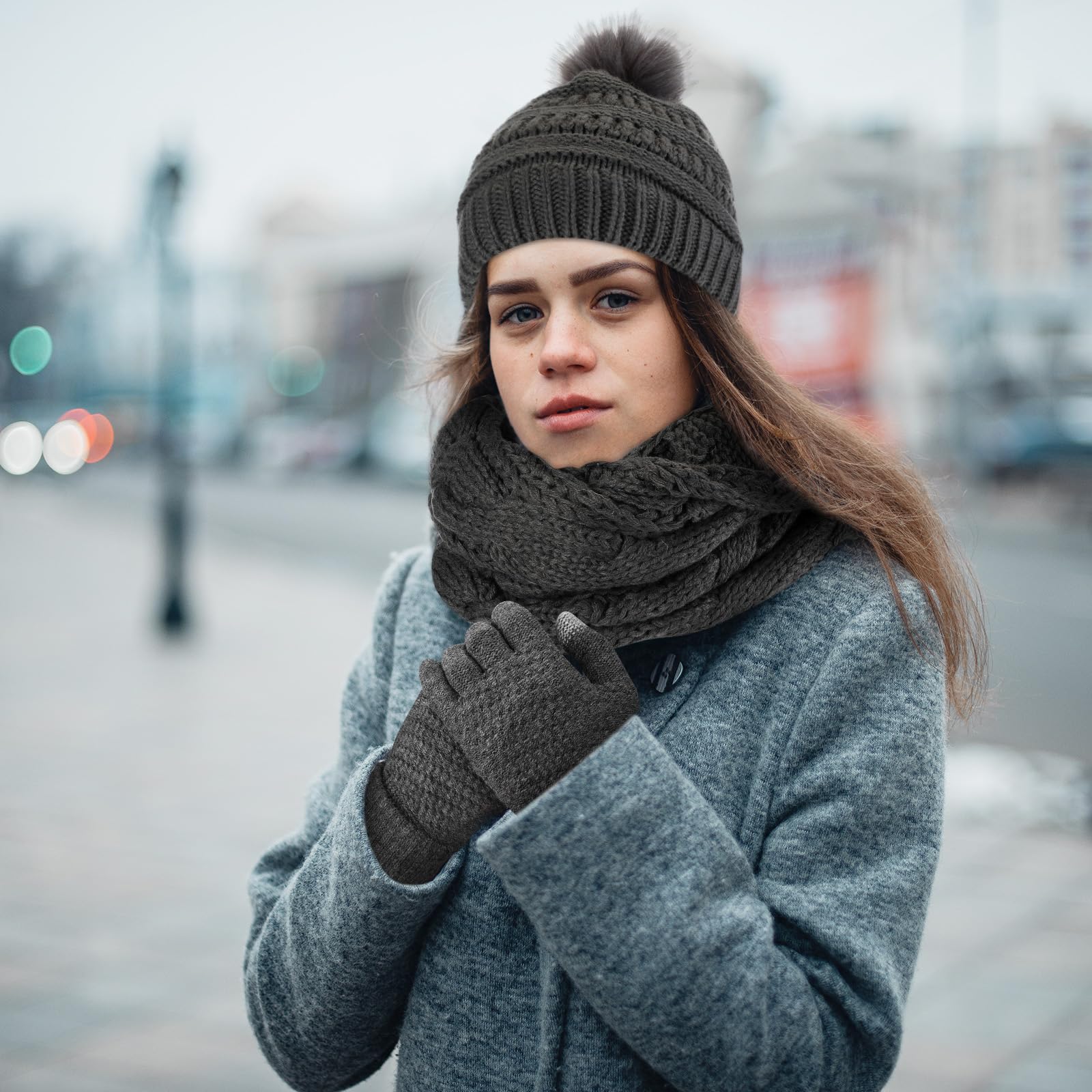 - One Size Fits Most: women pom knit hat is about 11.81 x 7 inches/ 30 x 18 cm, the circumference of circle scarf is about 13.78 inches/ 35 cm, and it can be stretched, suitable for most people; Gloves with function of touch screen and warm earmuffs are flexible and suitable for most women to wear