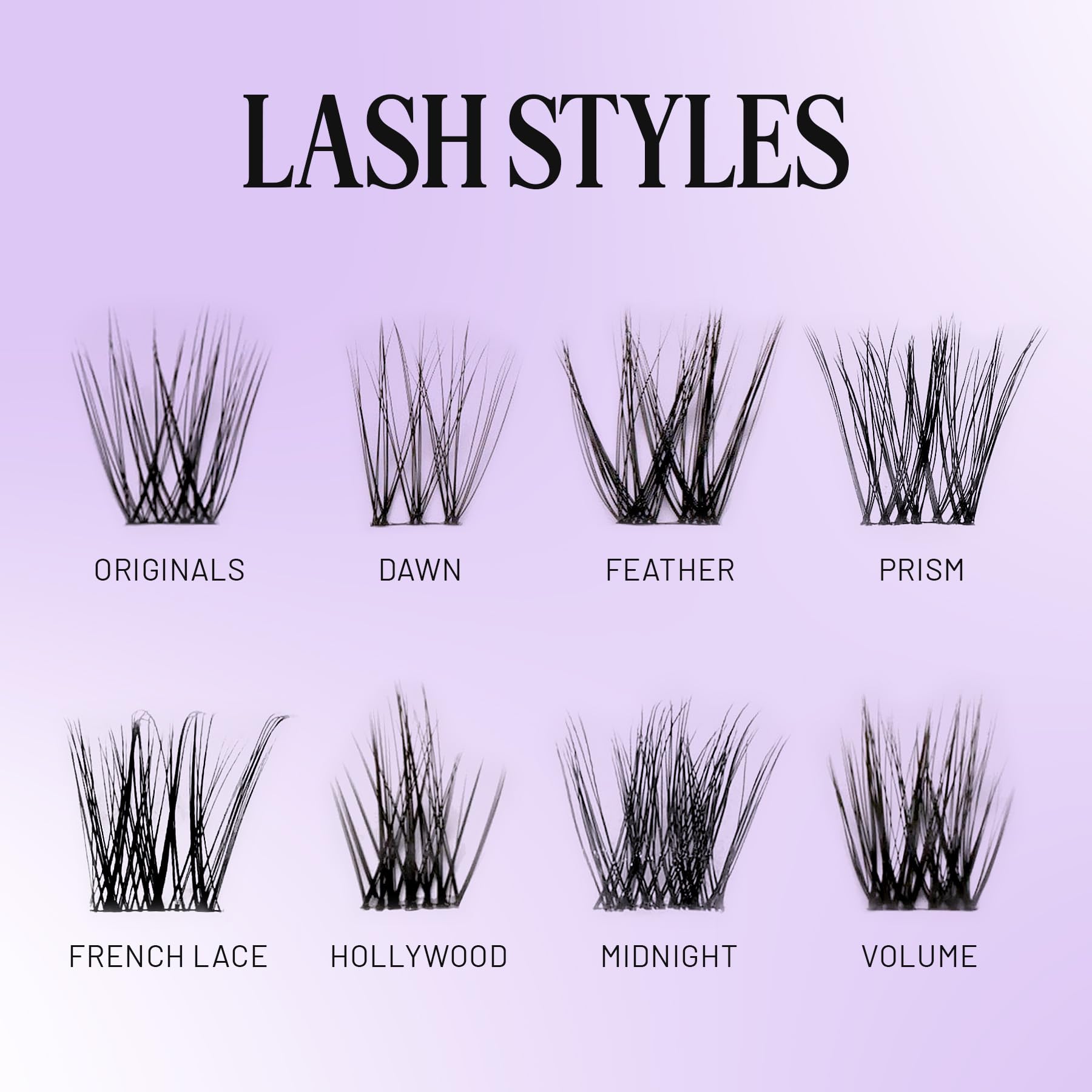- Hollywood Lashes - A wispy, spiky lash fit for stars. Hollywood has a soft spike in the middle surrounded by slightly shorter, wispier lengths. The fullness of the base mimics eyeliner to keep you red-carpet-ready. Available in 10, 12, 14, and 16mm to find your ideal natural fit.