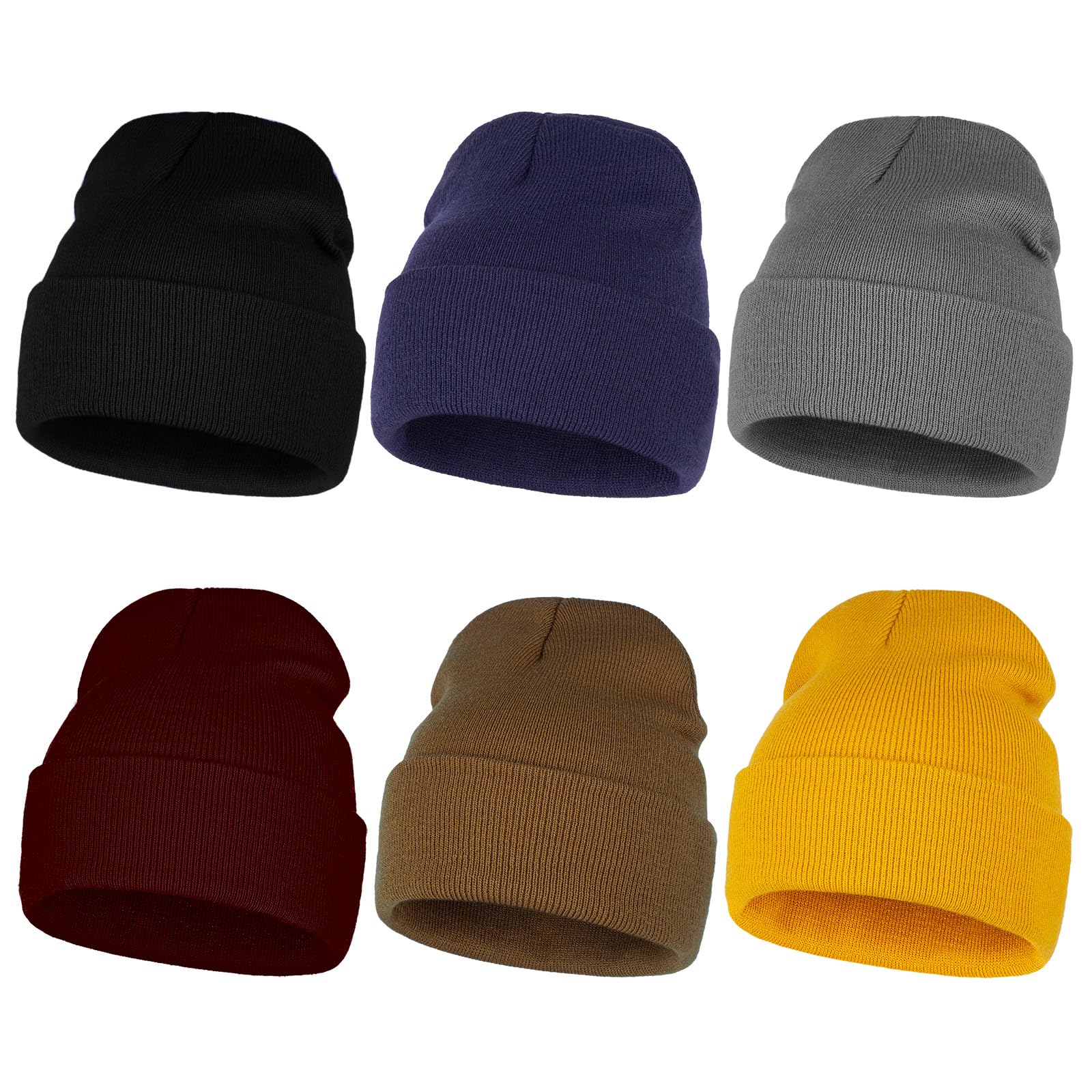 LILLBJORNEN 6 Pack Winter Cuffed Beanie Hats for Men Women Knitted Warm Skull Cap (US, Alpha, One Size, 6PCS multicolour2)