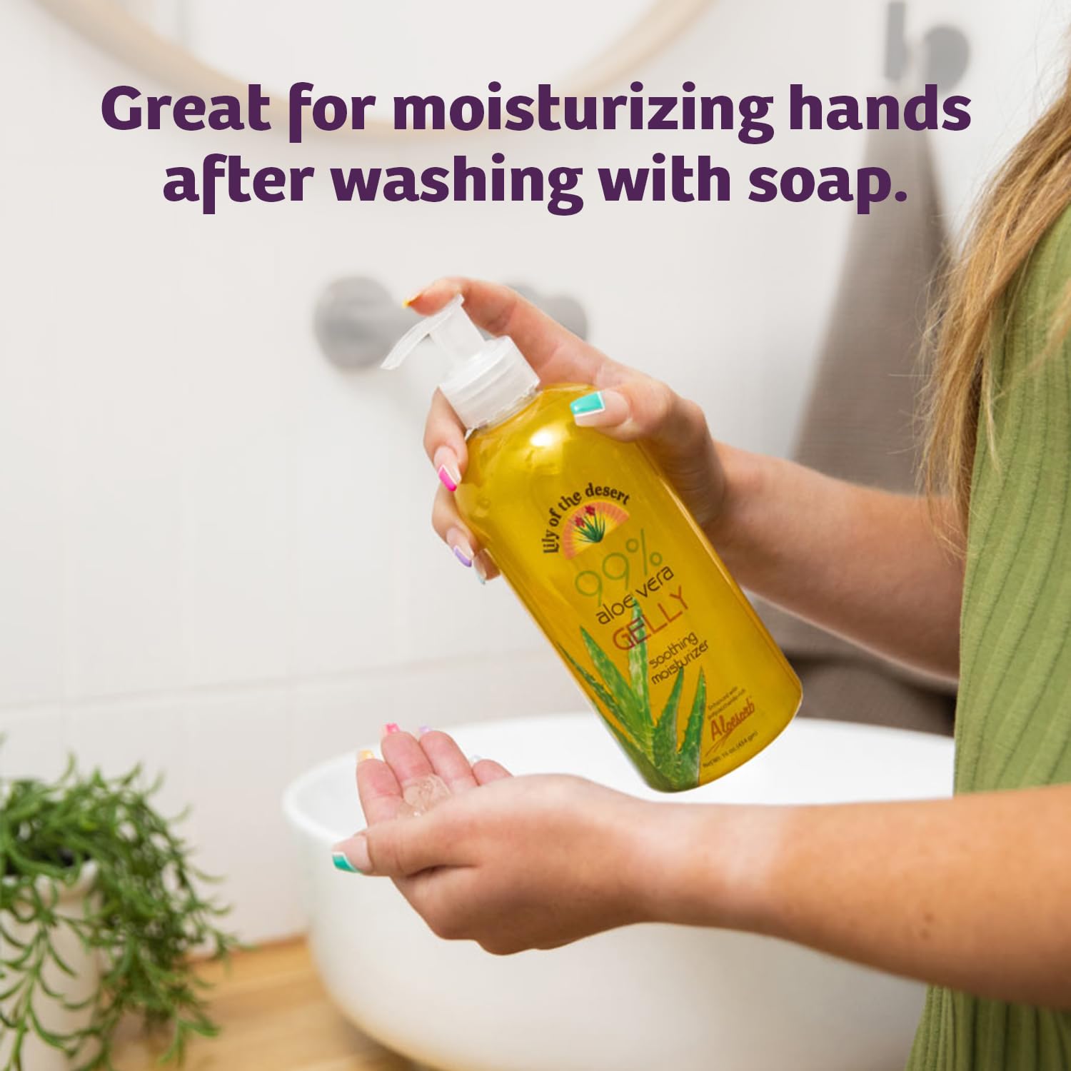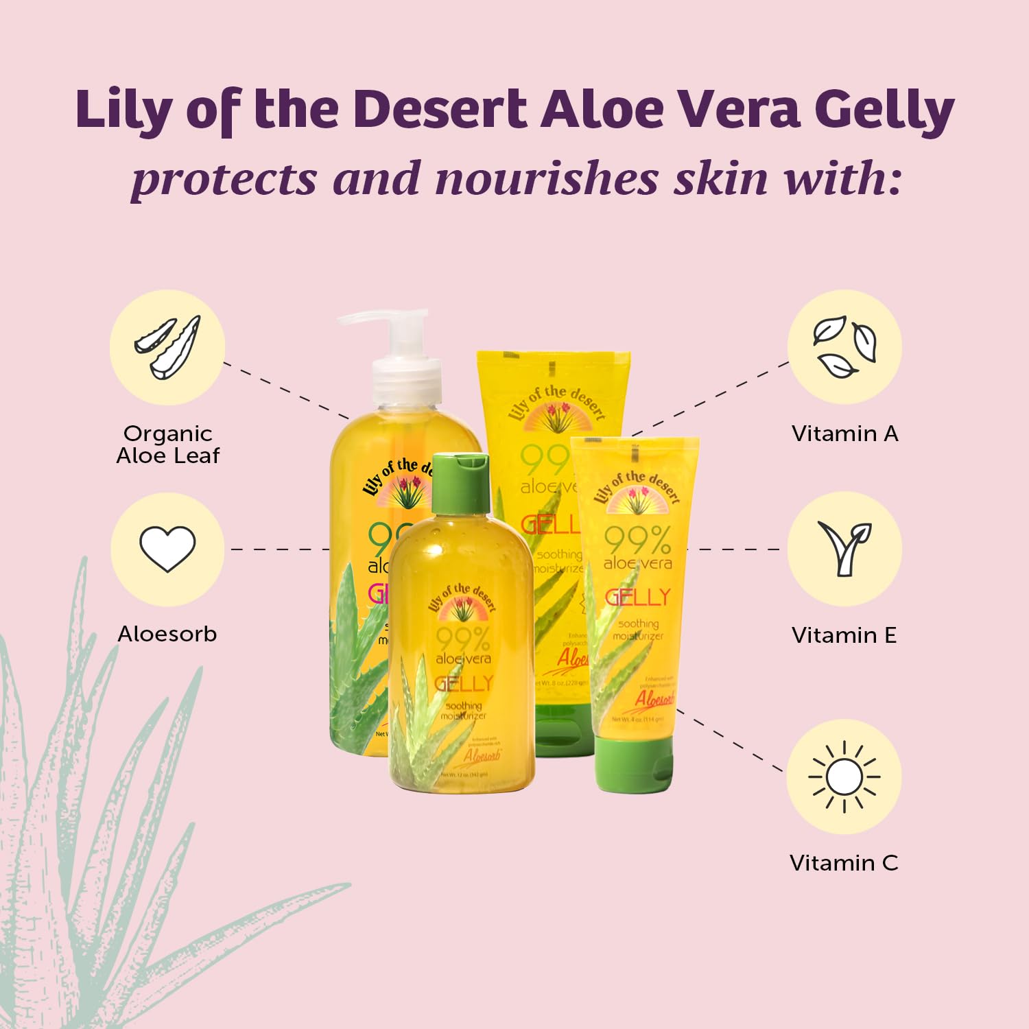 Lily Of The Desert Gelly Moisturizer - 99% Organic Aloe Vera Gel for Skin, After Sun Care with Aloe, Vitamin E Oil, and Vitamin C for Sunburn Relief, 16 Fl Oz