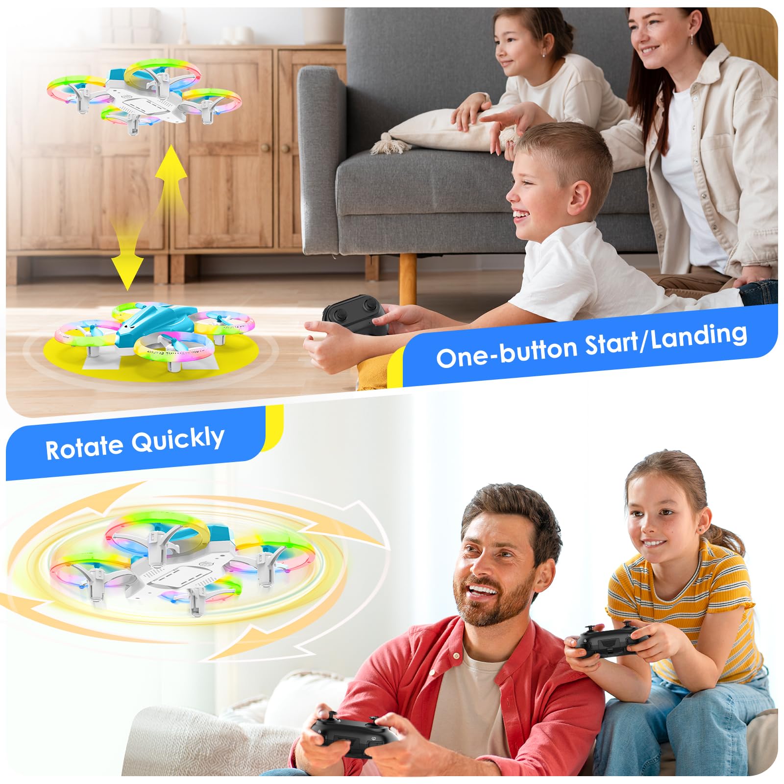 - 360 Flip Air Stunts: With a simple one-click roll button, Indoor drone can effortlessly execute 360 flip air stunts for endless fun. The mini drone also features a headless mode, one-click take-off and landing, and adjustable speed settings, allowing for a customized flying experience. This makes the Racing drone perfect for beginners and teenagers eager to learn.