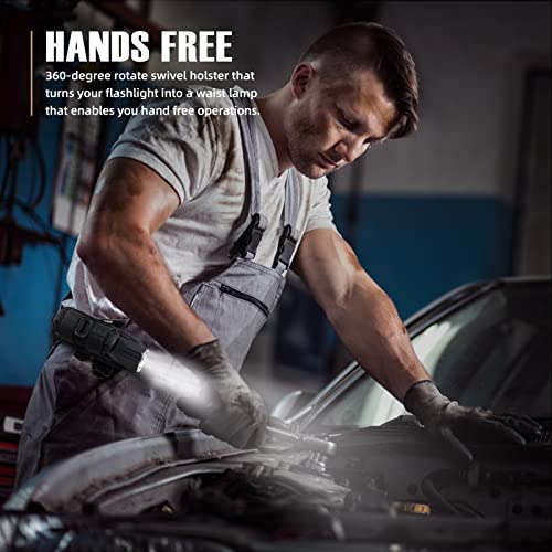 LIVANS Tactical Flashlight Pouch Holster, Rotatable Flashlight Holder Belt Clip Tactical Torch Carry Case with 360 Degree Carabiner Reel Clip