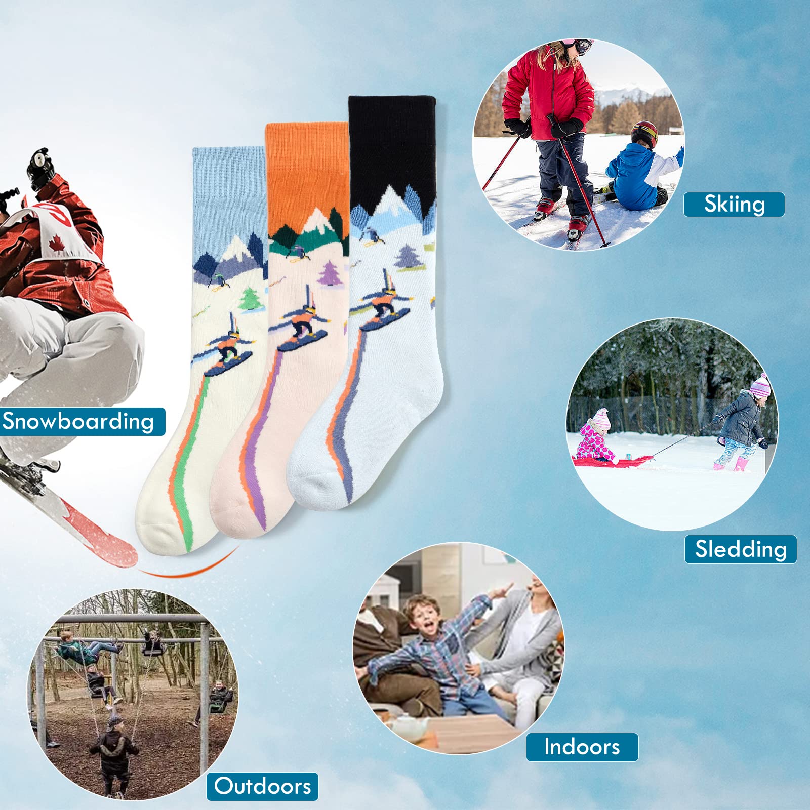 - ►KIDS SKI SOCKS 3 PACK AS PERFECT GIFT◄---Easy match and easy care, our valuable boys skating socks pack can lighten up every moment before rushing to the outdoors. Great for skiing, snowboarding, skating, trekking and so on. Also, Our boys thick thermal socks can be a great gift for Christmas, thanksgiving day or birthday.,etc.