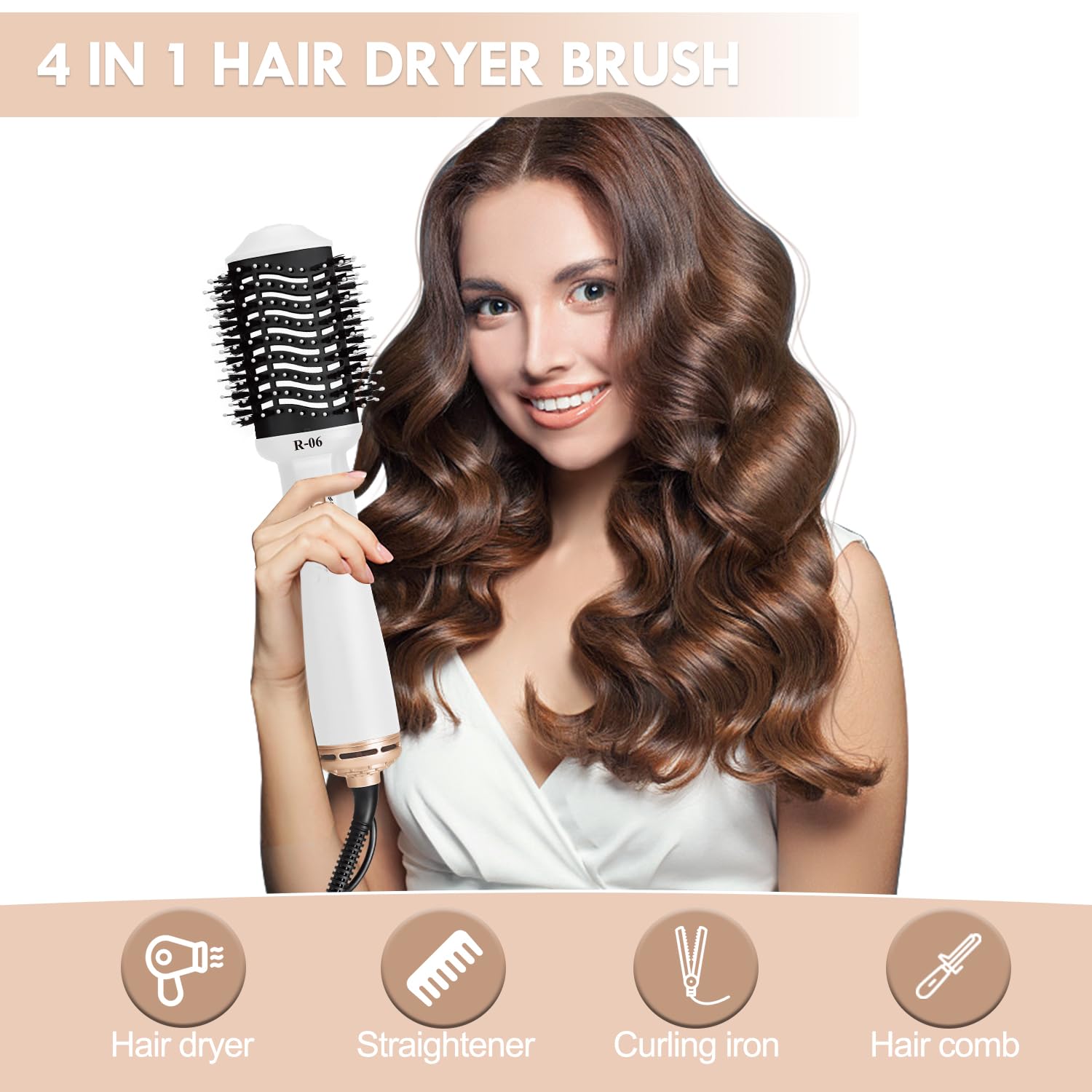Lopeie Hair Dryer Brush Blow Dryer Brush in One, 4 in 1 Hair Dryer and Styler Volumizer with Oval Barrel, Professional Salon Hot Air Brush for All Hair Types, Bright White