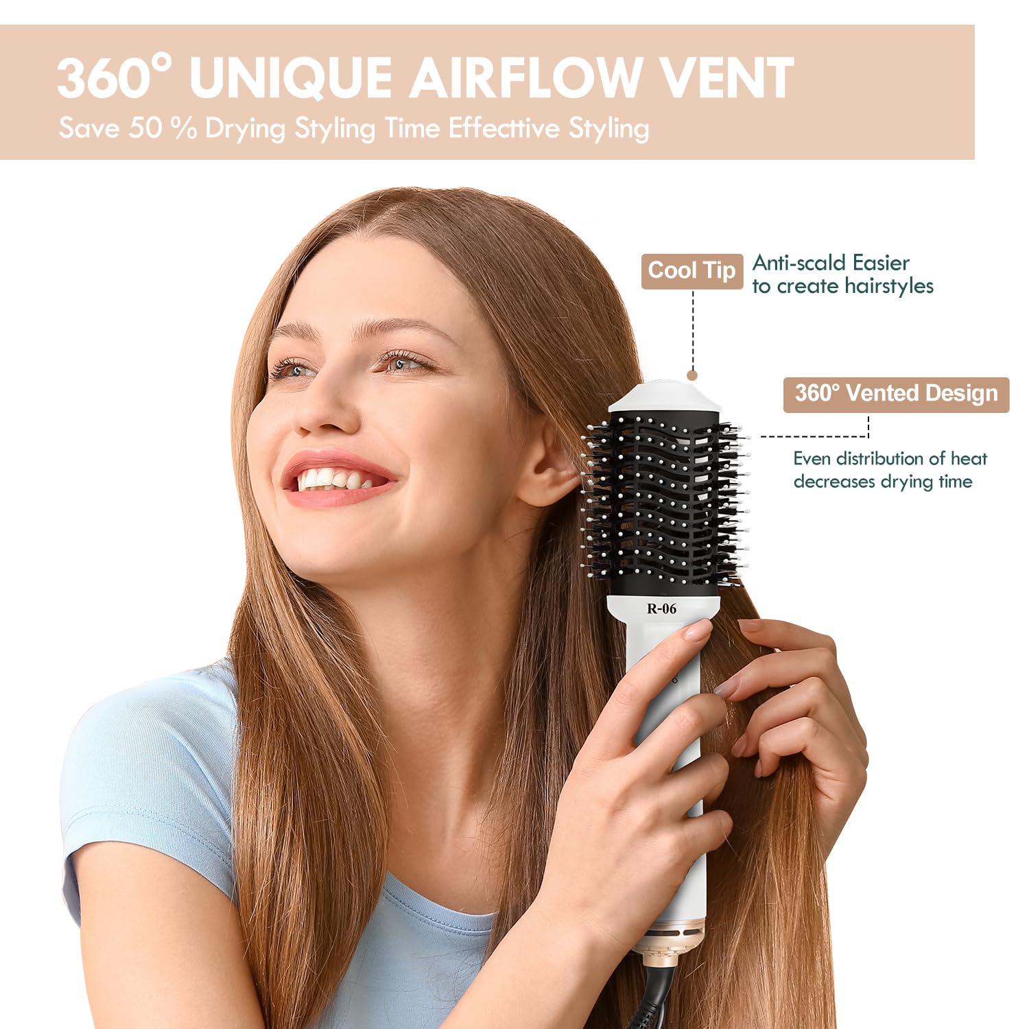 - 【4 IN 1 Drying & Smoothing & Volumizing & styling Hair】: The unique oval brush design smoothens the hair. Made with nylon pins and tufted bristles, it provides detangling, enhanced volume and better control.Different from traditional hair dryers, this volumizer can be positioned closer to the scalp to achieve maximum lift. With 360° surrounding wind and a 50% larger drying area, it allows you to save at least half the time needed for drying and styling your hair!!
