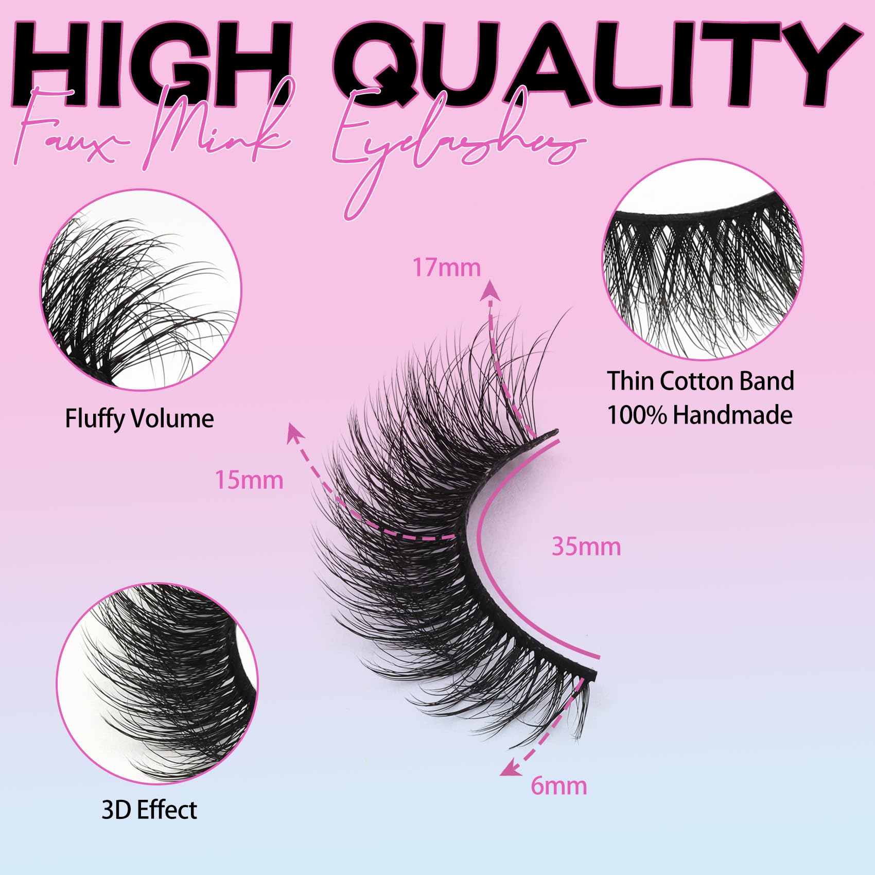 - High-quality eyelashes: These fake eyelashes are made of high quality synthetic fibers, not real mink, totally cruelty-free! 100% handmade craft and the latest technology created these the just right length and volume, which are smooth & skin-friendly.