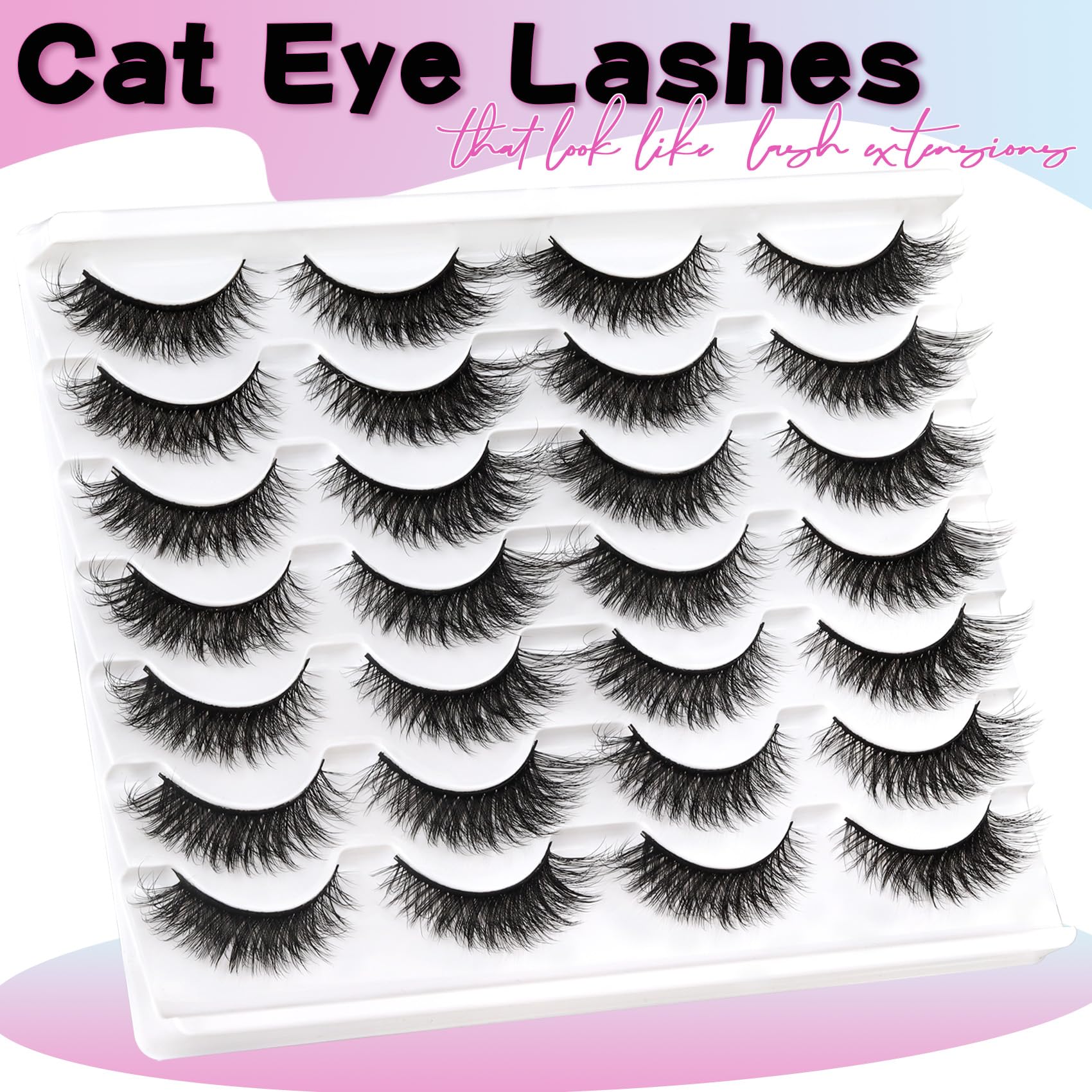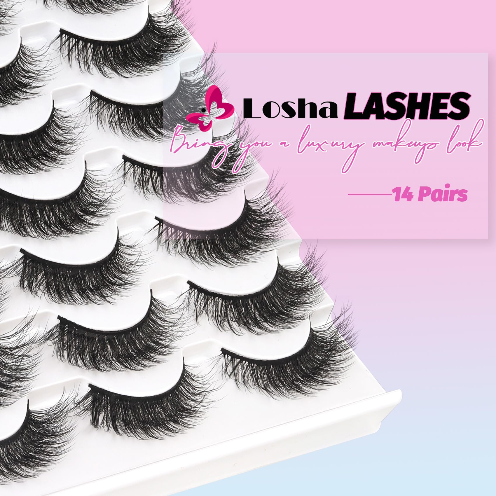 Losha Lashes Fluffy Cat Eye Lashes 14 Pairs 3D False Eyelashes Soft Crossed Eye Lashes Pack Comfortable Fake Eyelashes(614)