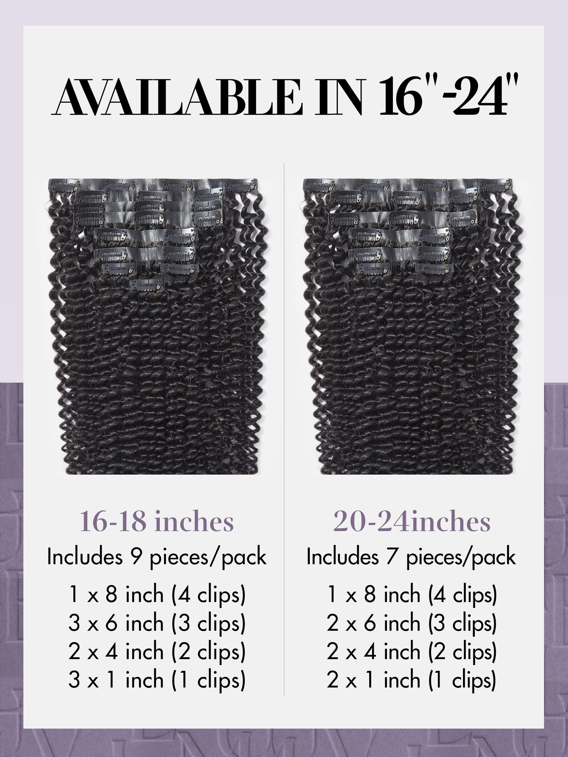 LUVME Curly Clip in Hair Extensions, 16 Inch 2 Pack 270g 18pcs Kinky Curly Seamless Clip in Hair Extensions Real Human Hair for Women, Natural Black