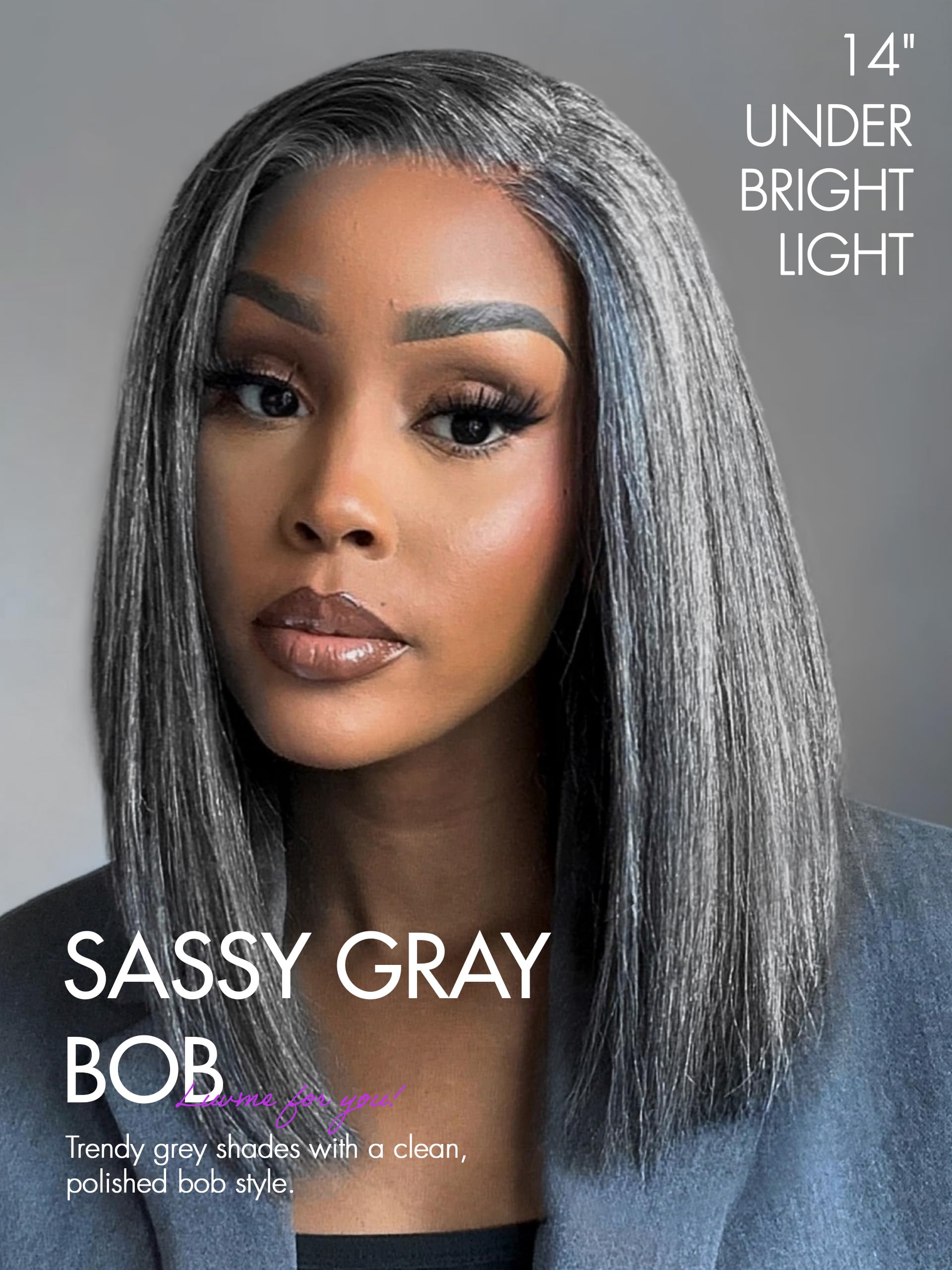 LUVME HAIR 14'' Grey Salt & Pepper Bob Wig Blunt Cut Bob Wig Pre Cut Glueless Wigs Glueless Lace Front 14 Inches Bob, Pre Cut Plucked Hd Lace Short Wig Ready To Go Natural Color Straight Side Part