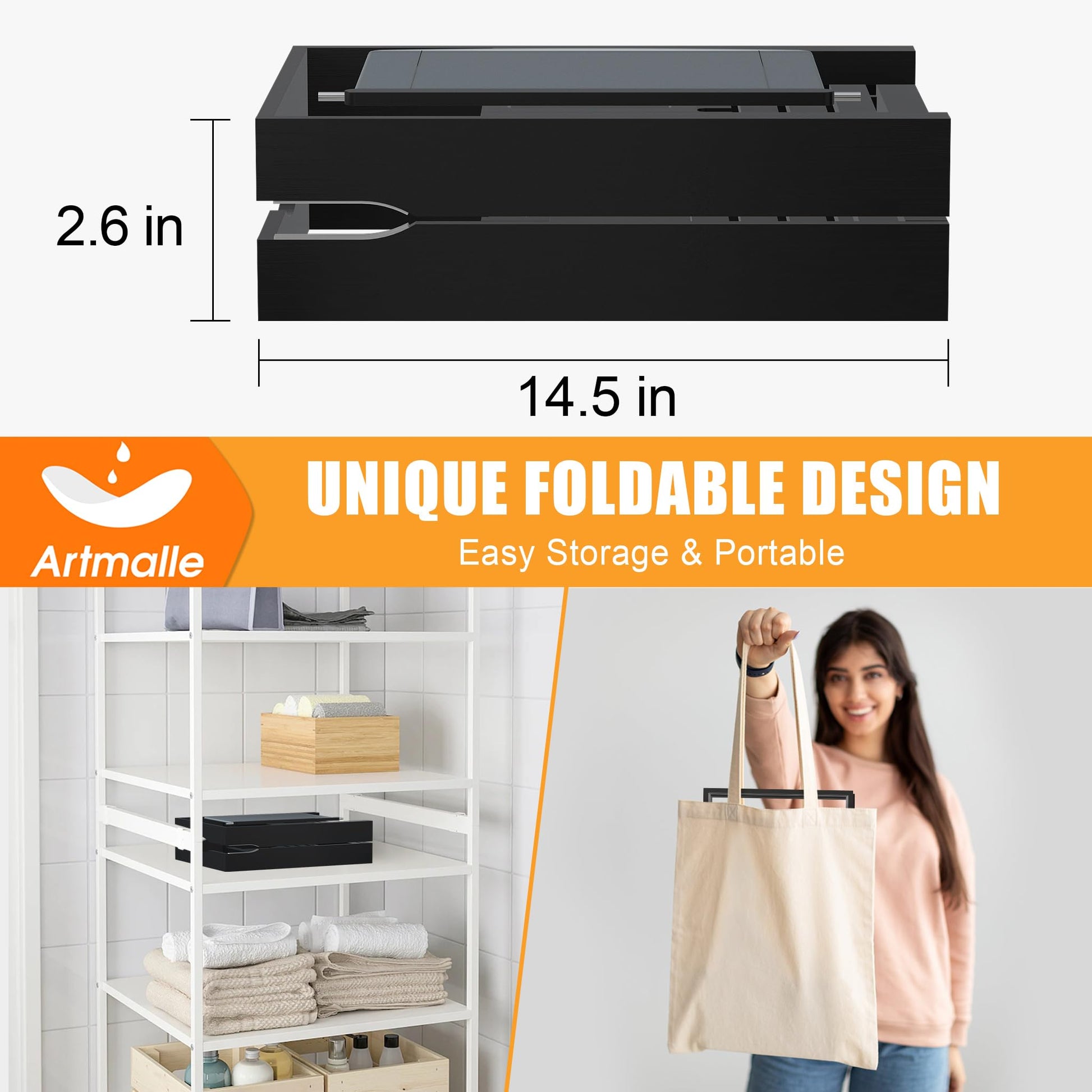 Luxury Bathtub Caddy Tray for Tub - Foldable Bamboo Bath Table Tray with Book and Wine Glass Holder, Expandable Bathroom Accessories for Spa or Reading Lite Style,Black