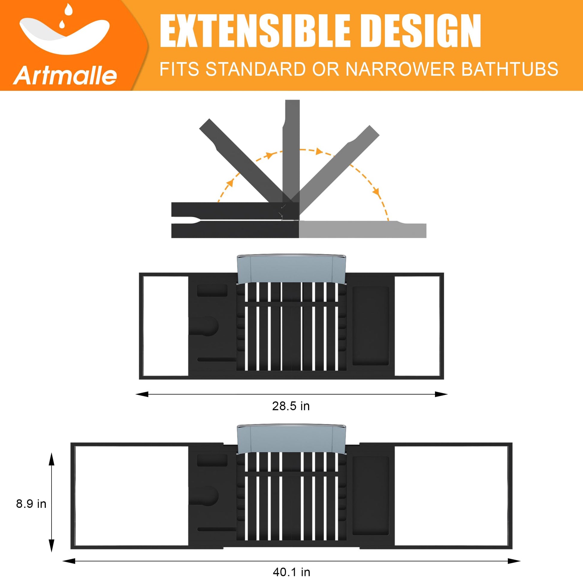 - 🛀🏼ADJUSTABLE BATH TRAY:This bathtub caddy was specifically designed to expand from 28.5 inches to 40.1 inches,fits all standard roman bathtub,you just need to manually adjust it to the right length and don't need any tools.