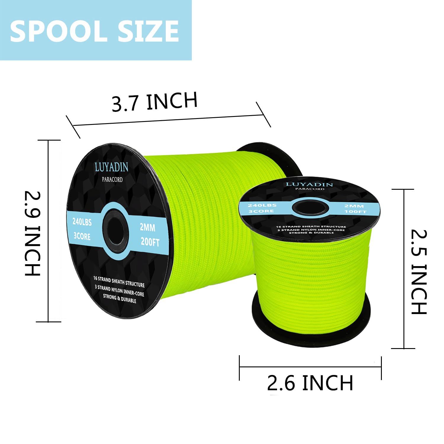 LUYADIN Paracord 240lb - Diameter 2mm Micro Utility Cord -3 Strand Parachute Spool Cord - 100ft 200ft,Paracord for Camping,Hiking,Fishing,Outdoor and DIY