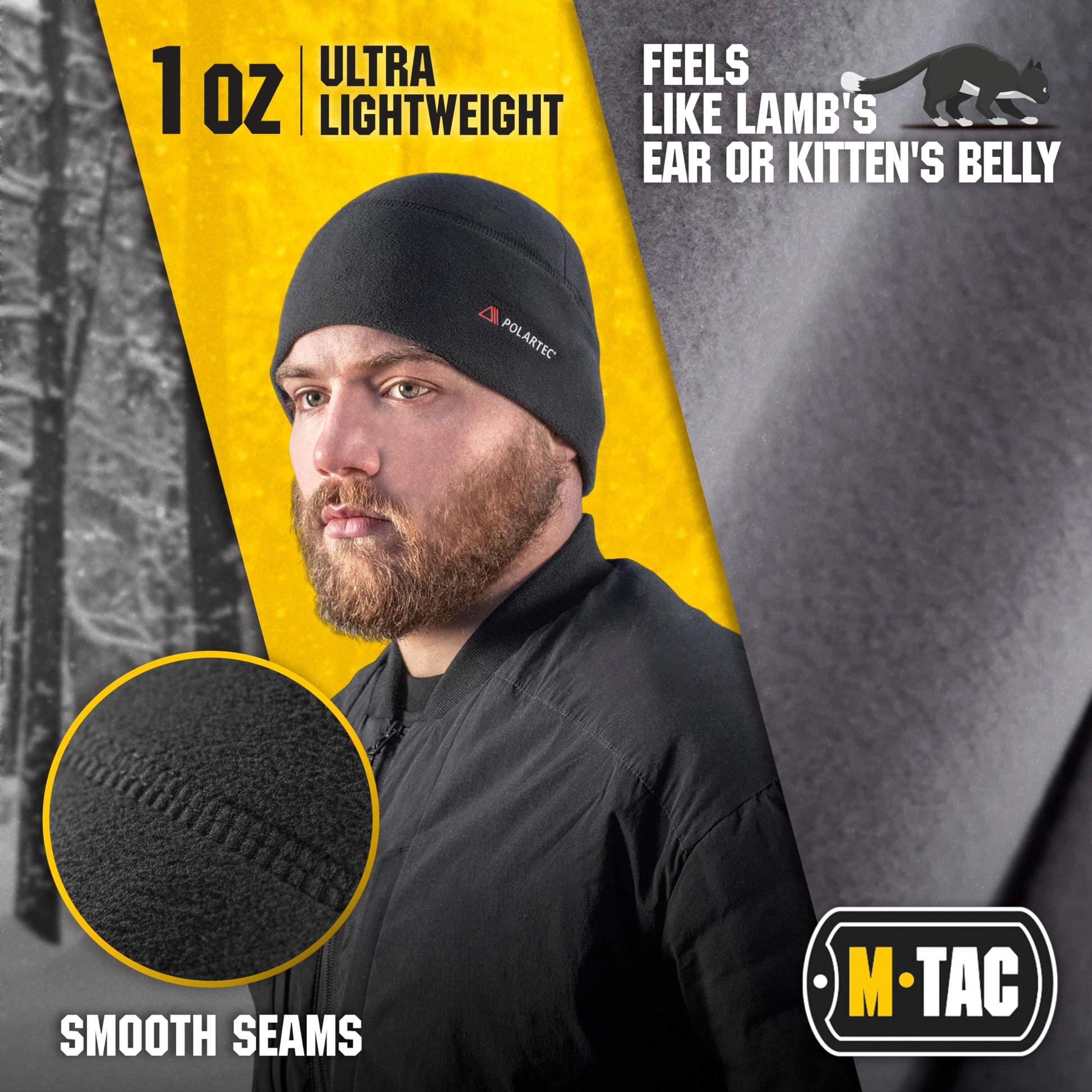 M-Tac Polartec Micro Series Fleece Watch Cap - Tactical Army Military Beanie Hat Winter Skull Cap (XL, Black Polartec)