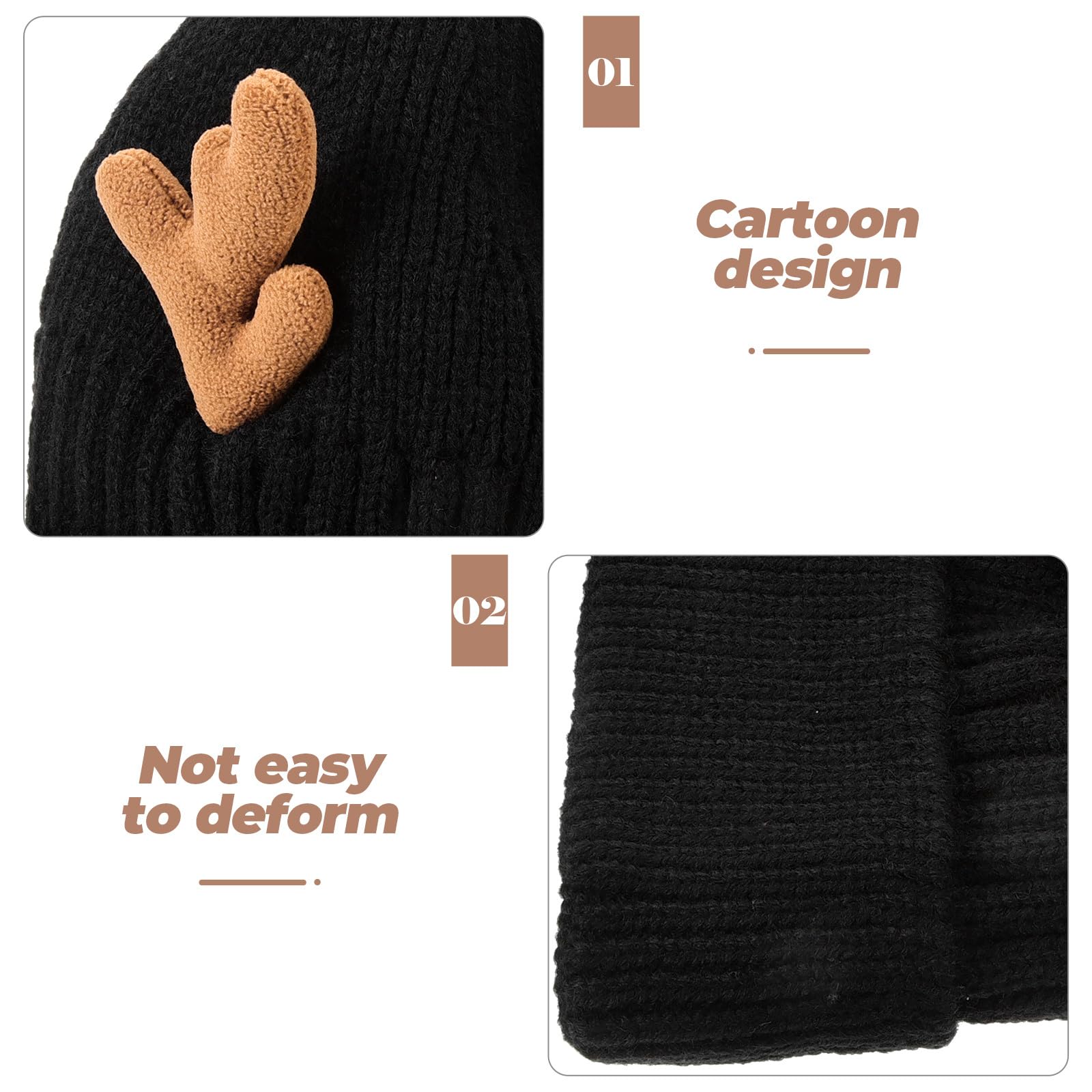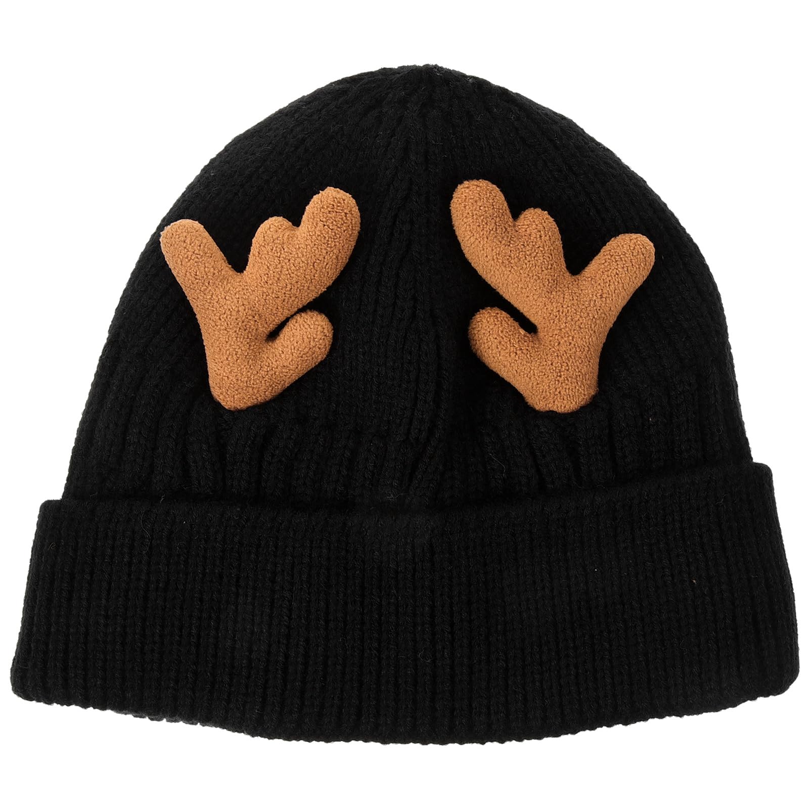 MAGICLULU 1 Pack Reindeer Beanie Antler Warm Cap Christmas Knitted Beanie Hat for Adults Women Adults(Black)