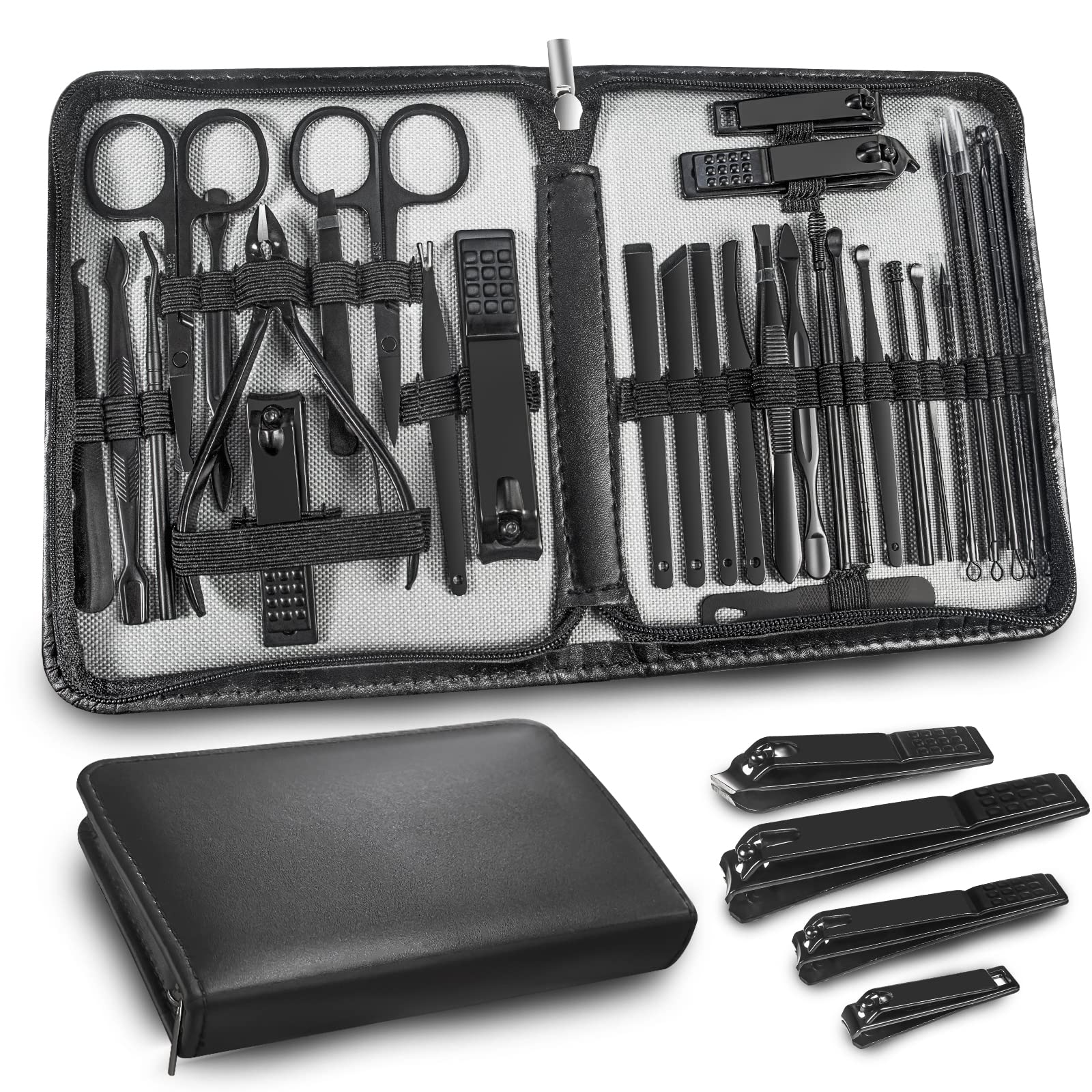 Manicure Set Personal Care Mens Grooming Kit, 30 In 1 Professional Manicure Kit Pedicure Kit, Nail Clippers for Men and Beauty Tool Portable Set, with Luxurious Travel Case (Black)