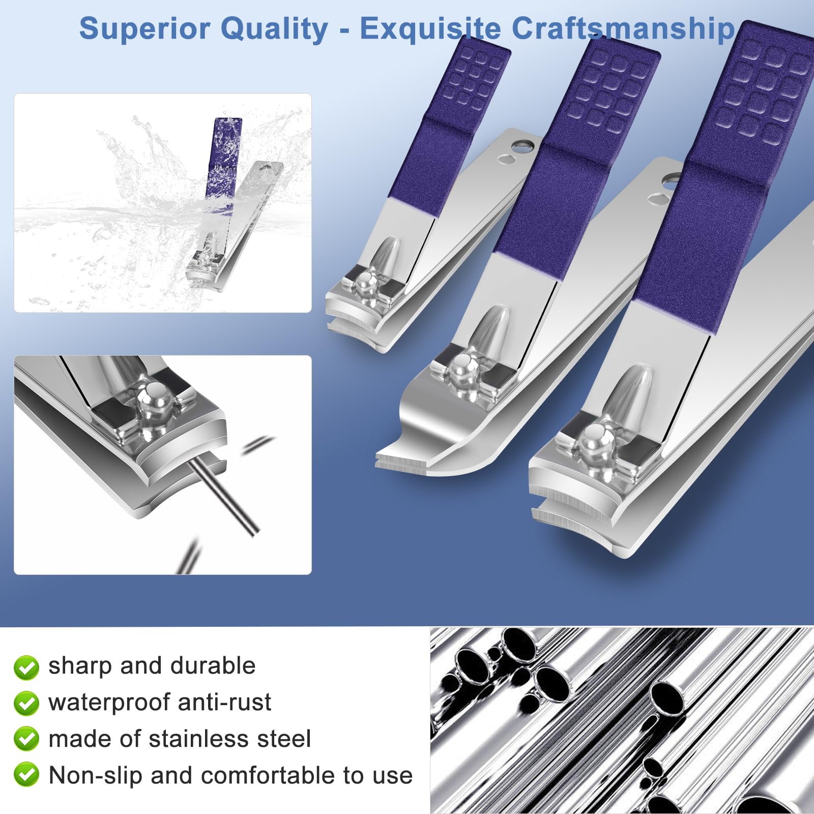 - HIGH QUALITY STAINLESS STEEL NAIL CLIPPER: The nail clipper set is made of high-precision stainless steel, each accessory has been repeatedly ground and polished, very hard, healthy, sharp and durable to help you and your family use it safely