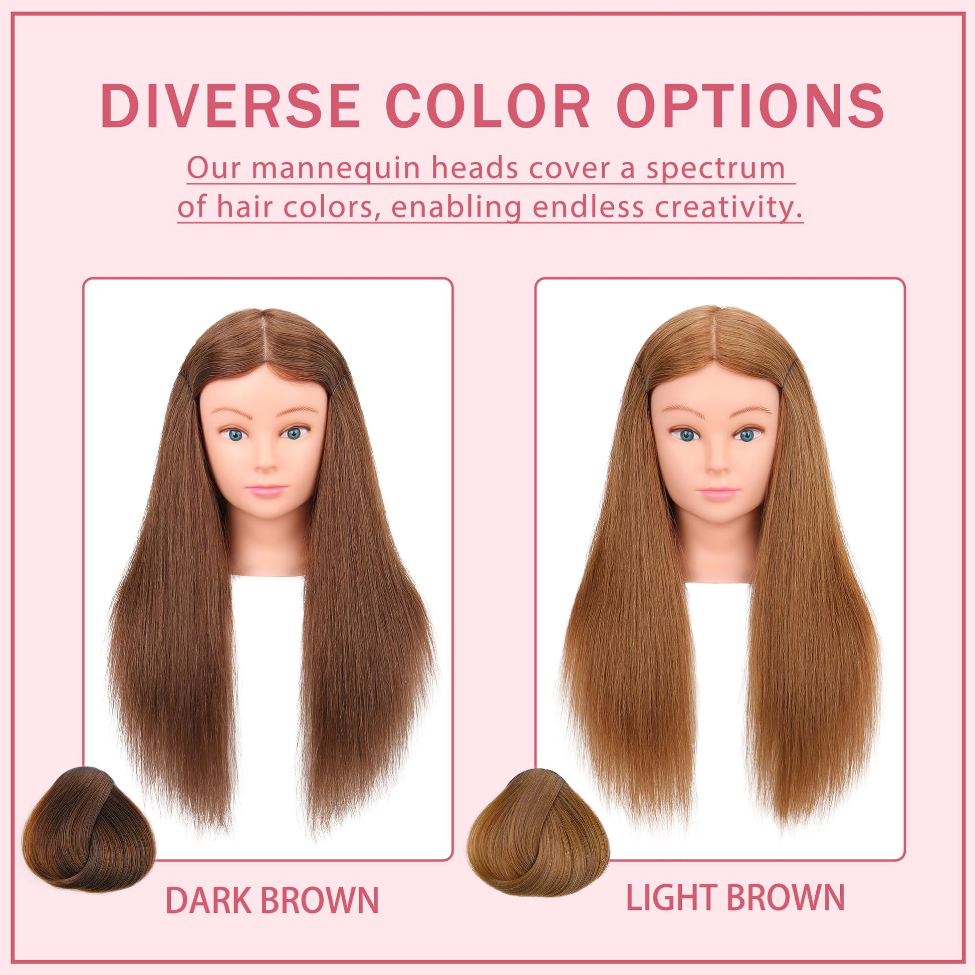 - 【Fantastic Present】This Human Hair Mannequin Head is the perfect selection for aspiring hairstylists to hone their skills, young girls to engage in imaginative play, or as educational materials for kindergarten or primary school classrooms.