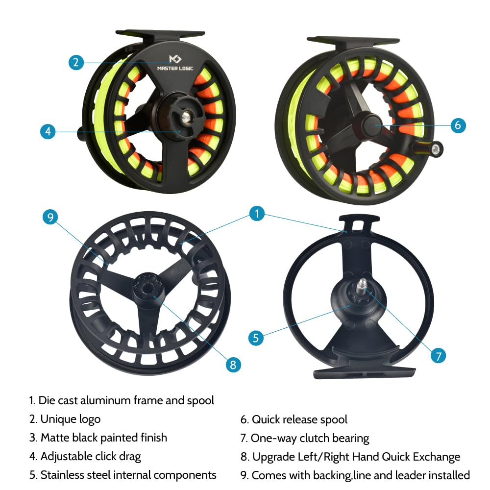 - Durable Fly Fishing Reel: This an aluminum lightweight fly fishing reel, adjustable disc drag. The reel is pre-spooled with backing, Weight-forward floating line and tapered leader