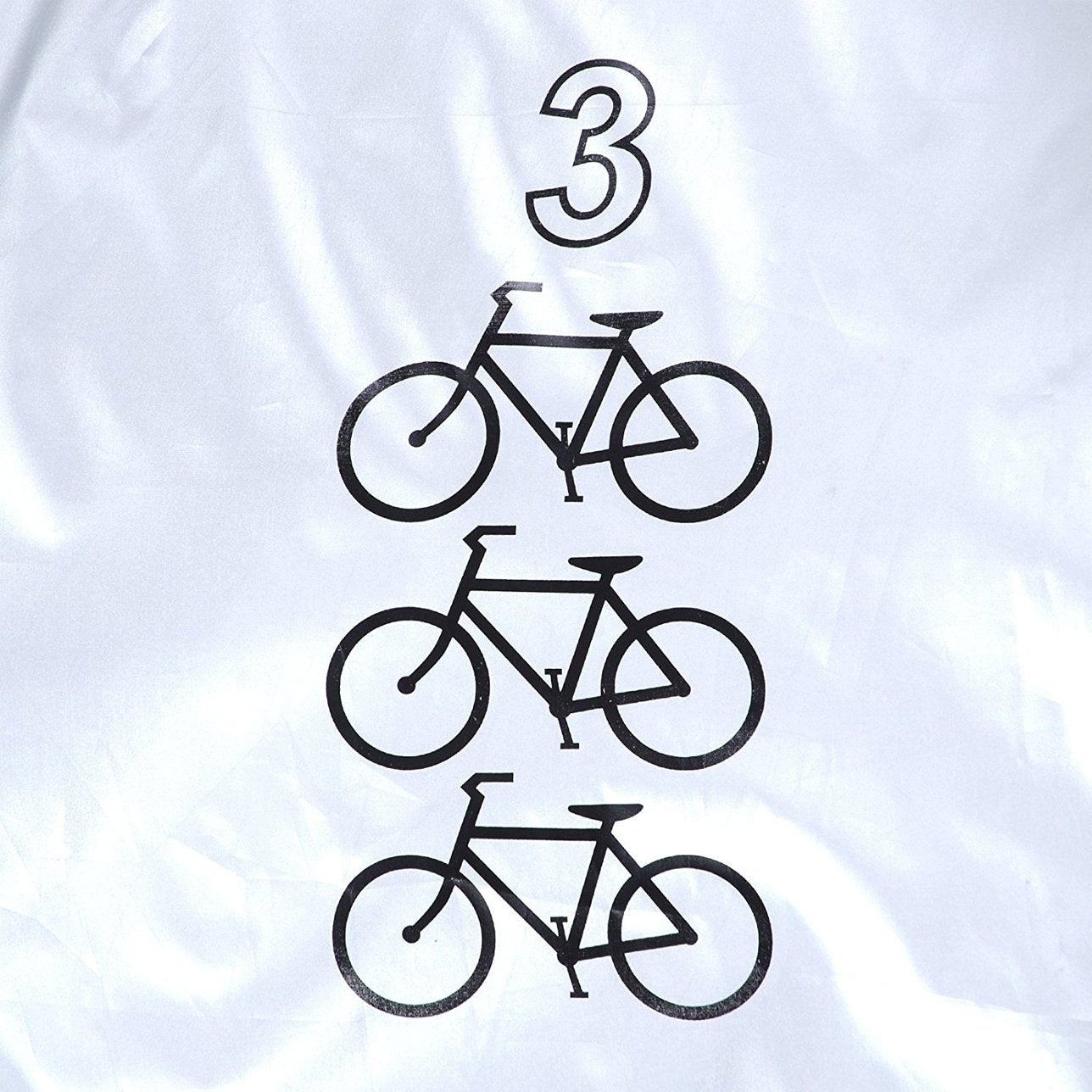 - 【Bigger Size】Capacity: 3 bike,fits for mountain bike, electric bike and city bike up to 29' wheel size. Non-stretched dimensions: 200cm L x 105cm H x 110cm W ( 78.7L * 41.3W * 43.3H inches ).PLEASE MEASURE YOUR BIKE BEFORE ORDERING.