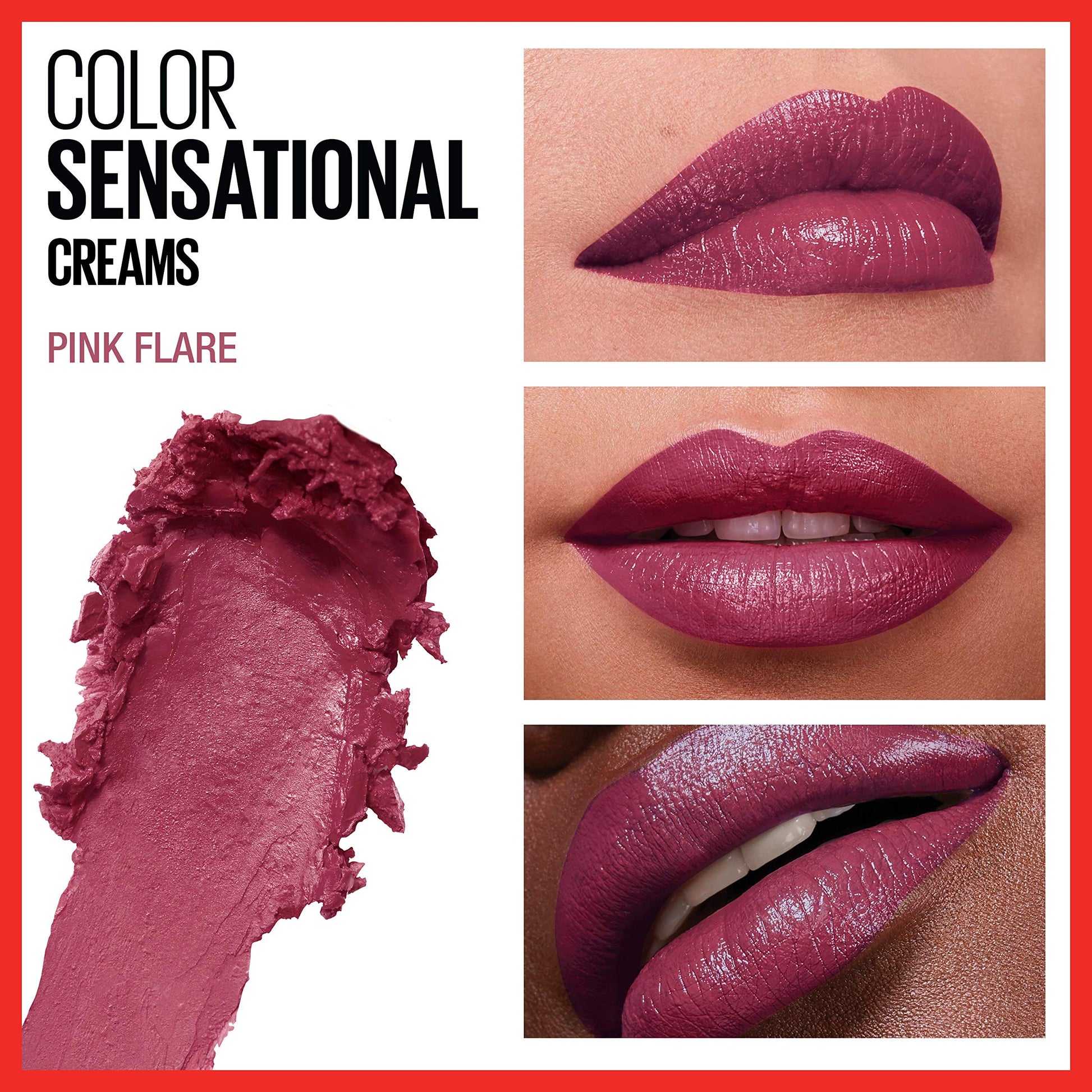 Maybelline Color Sensational Lipstick, Lip Makeup, Cream Finish, Hydrating Lipstick, Nude, Pink, Red, Plum Lip Color, Pink Flare, 0.15 oz; (Packaging May Vary)