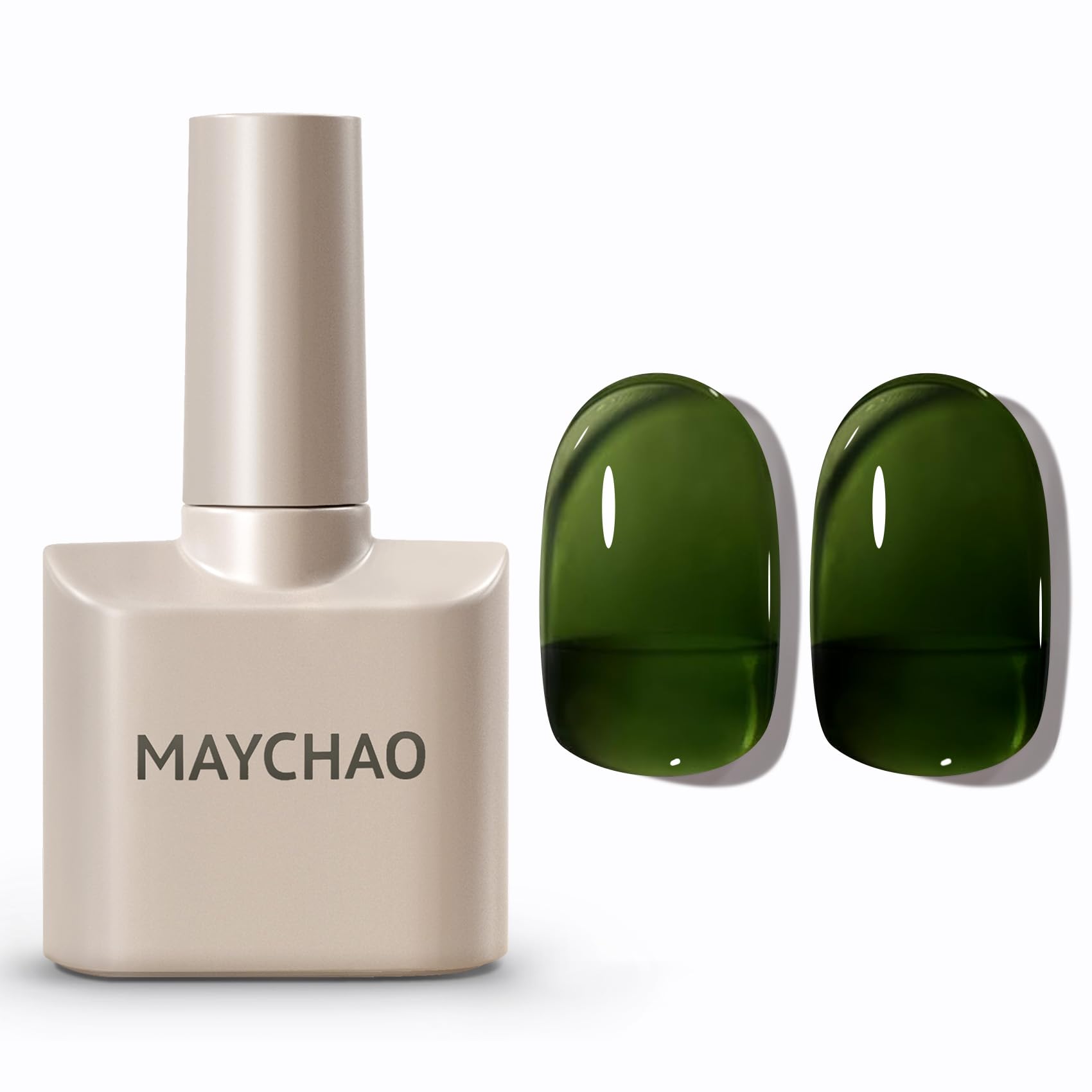 MAYCHAO 15ML Jelly Moss Green Gel Nail Polish 1Pc Transparent Forest Jade Green Gel Polish Soak Off UV LED Translucent Nail Polish Nail Art Starter Manicure Salon DIY at Home, 0.5 OZ