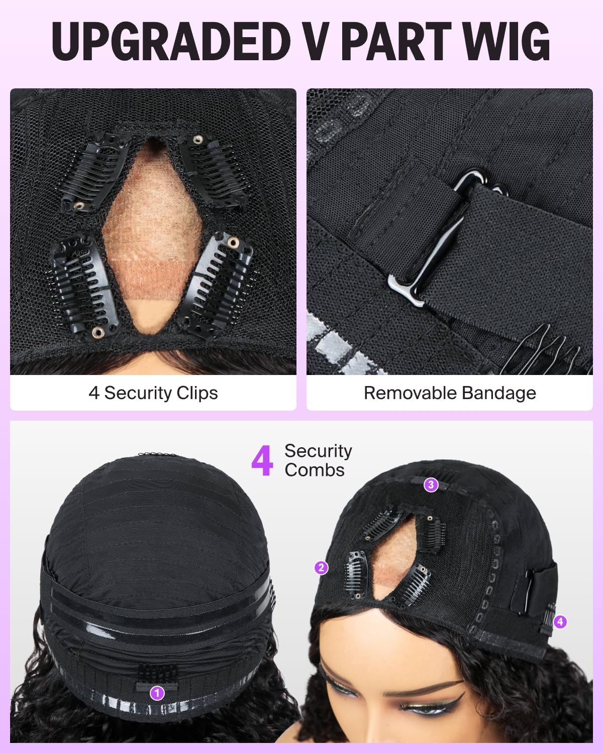 - Beginner Friendly: Made of high quality human hair, 200% density, full and thick, no tangle, breathable and easy to install, It's certainly Cheaper/Quicker than a trip to the salon. V part human hair wigs for women great to wear in any seasons, adding more beautiful without bulk.