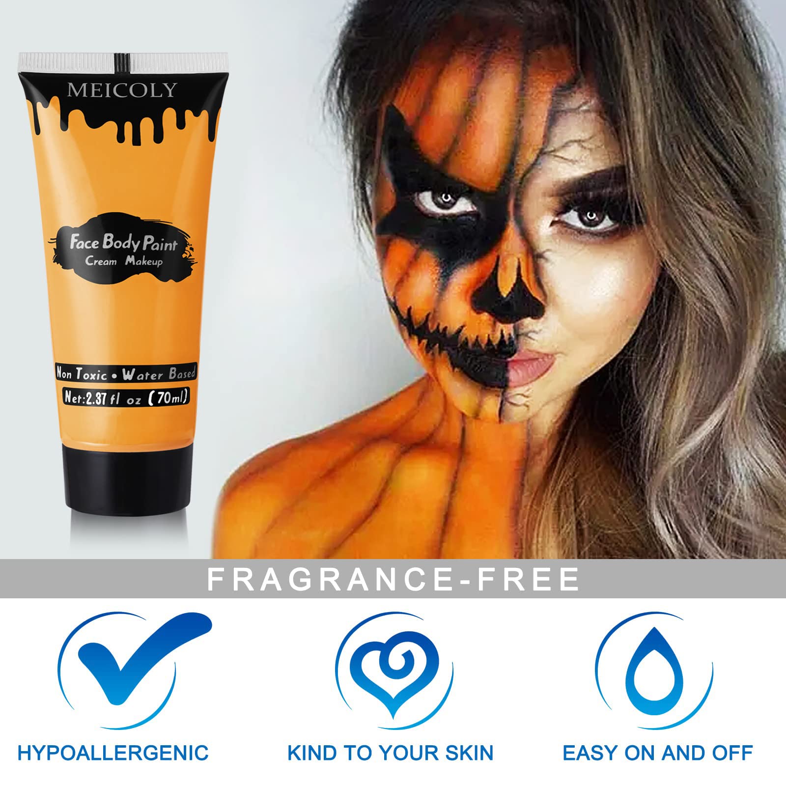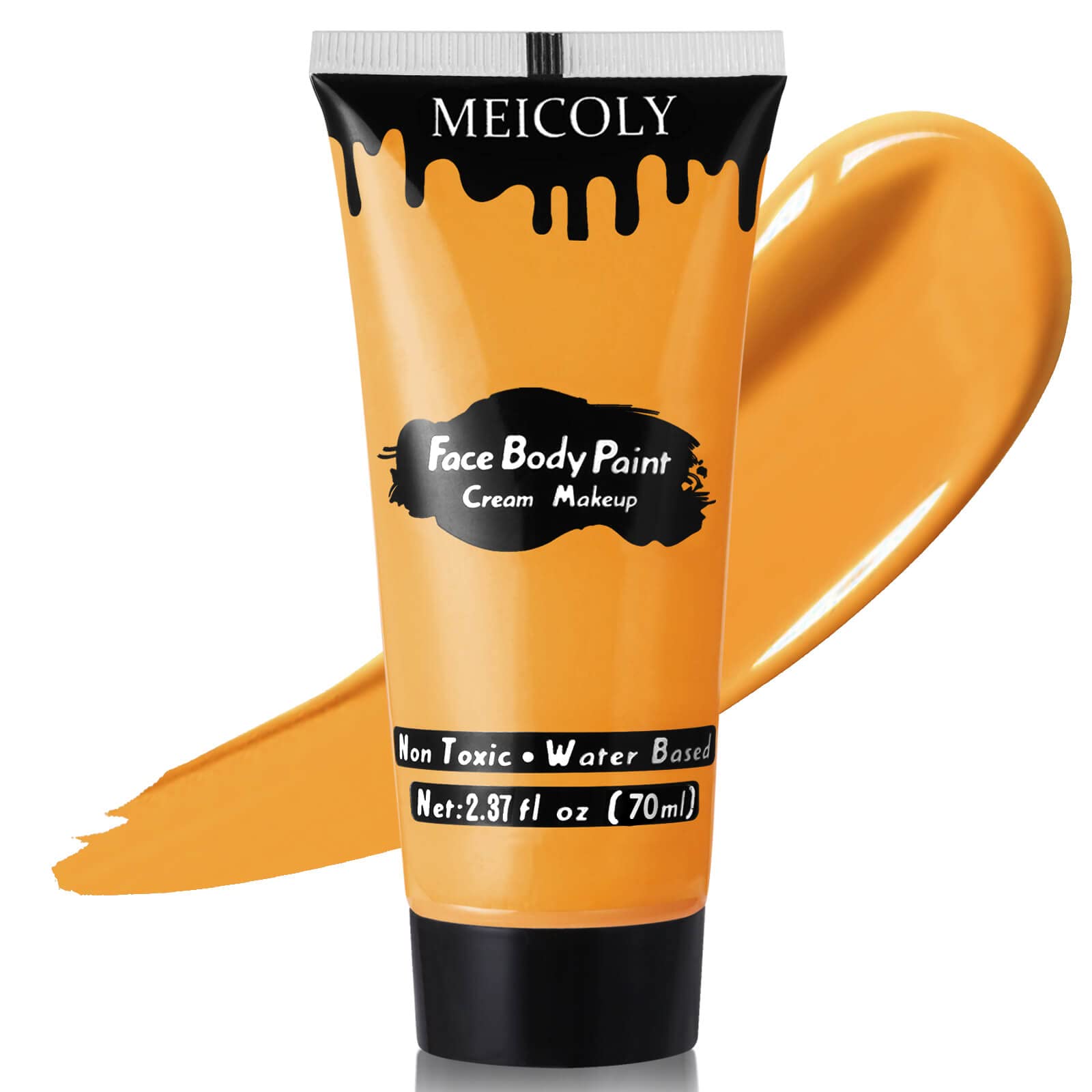 MEICOLY Orange Cream Face Body Paint,2.37Oz Large Tube Water Based Washable Face Paint,Non-Toxic Full Body Paint for Adults and Children, Pumpkin Halloween SFX Special Effects Cosplay Makeup,Orange