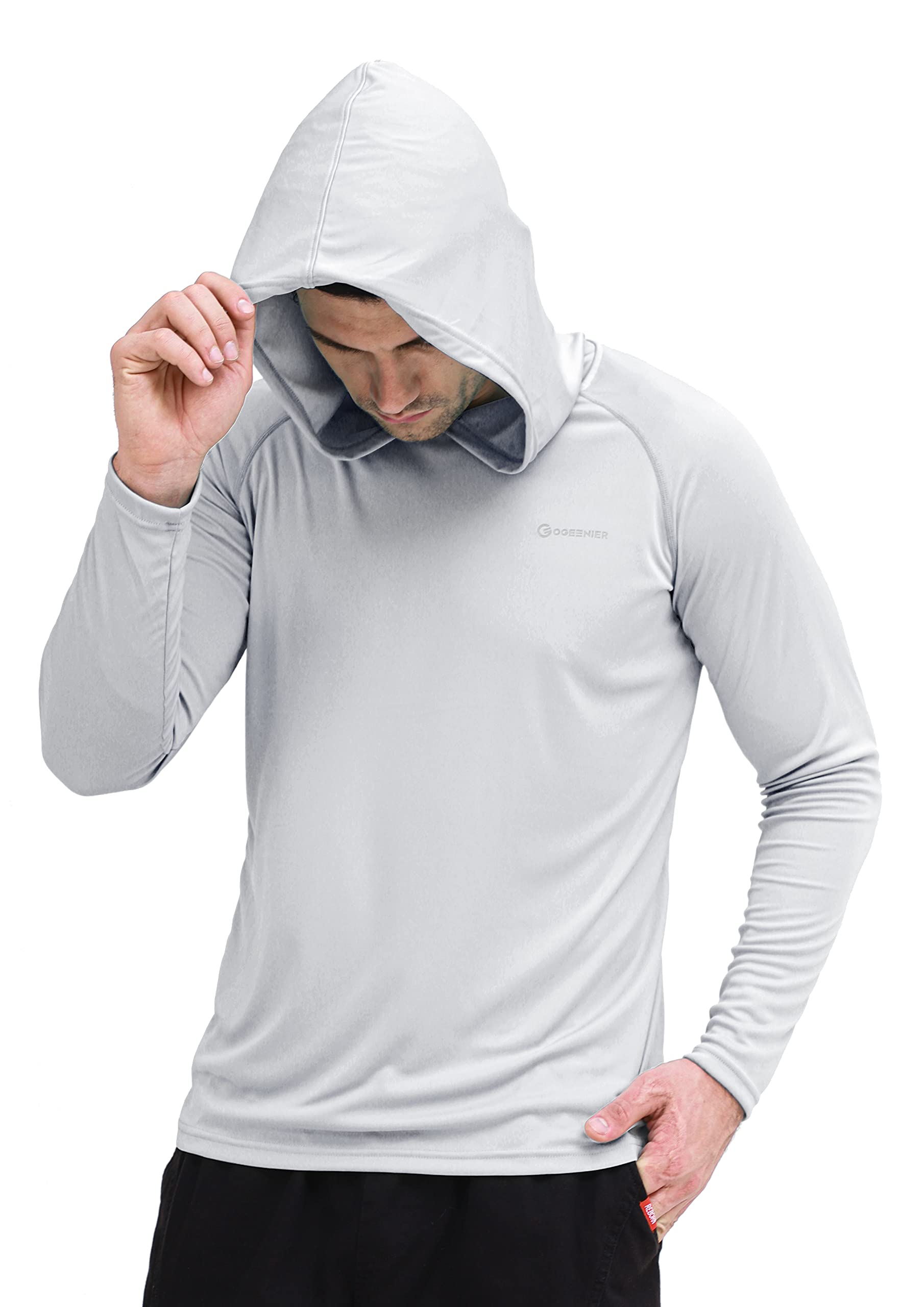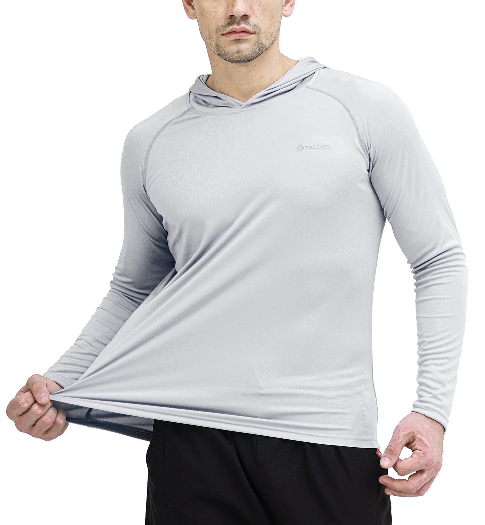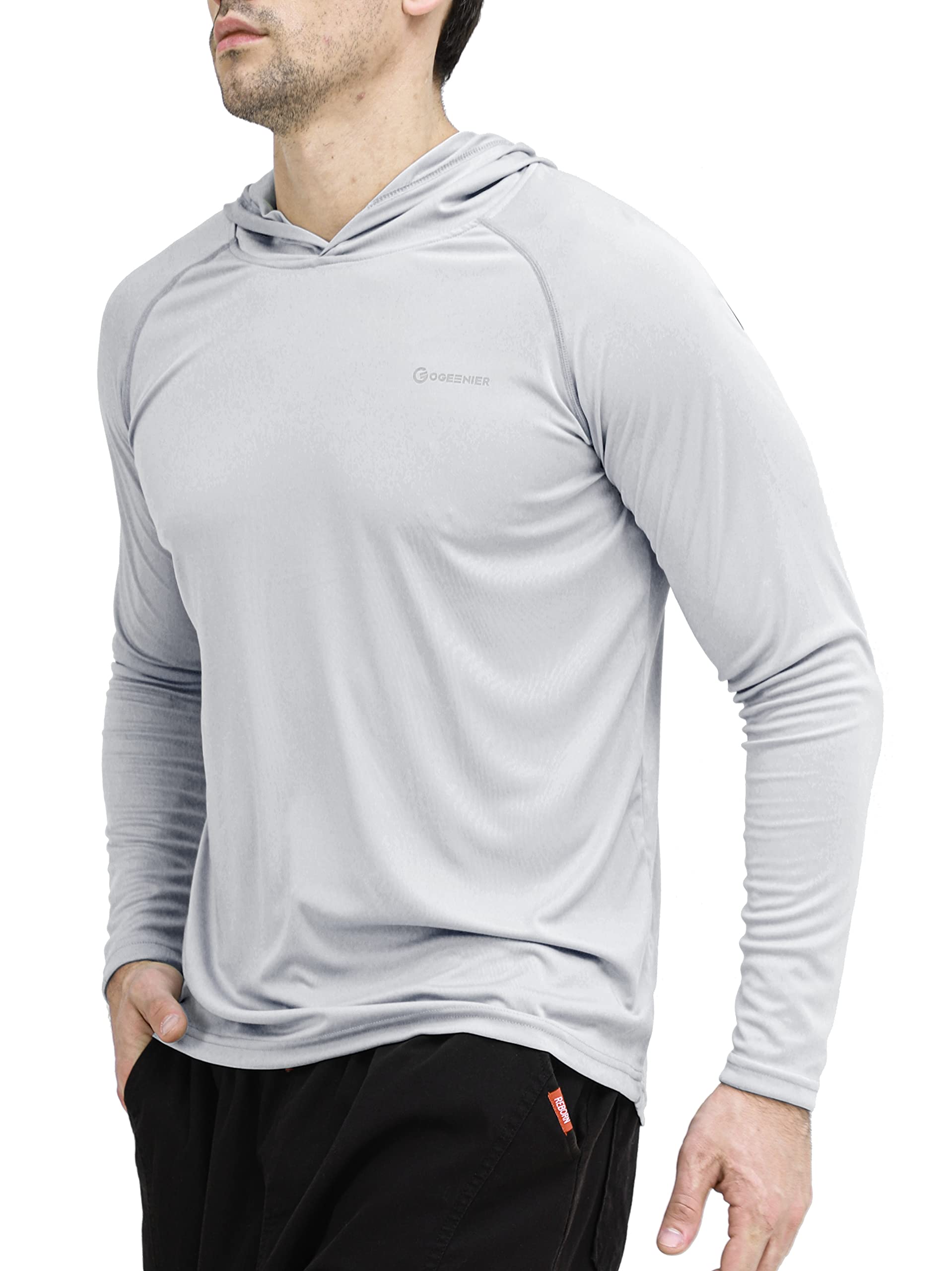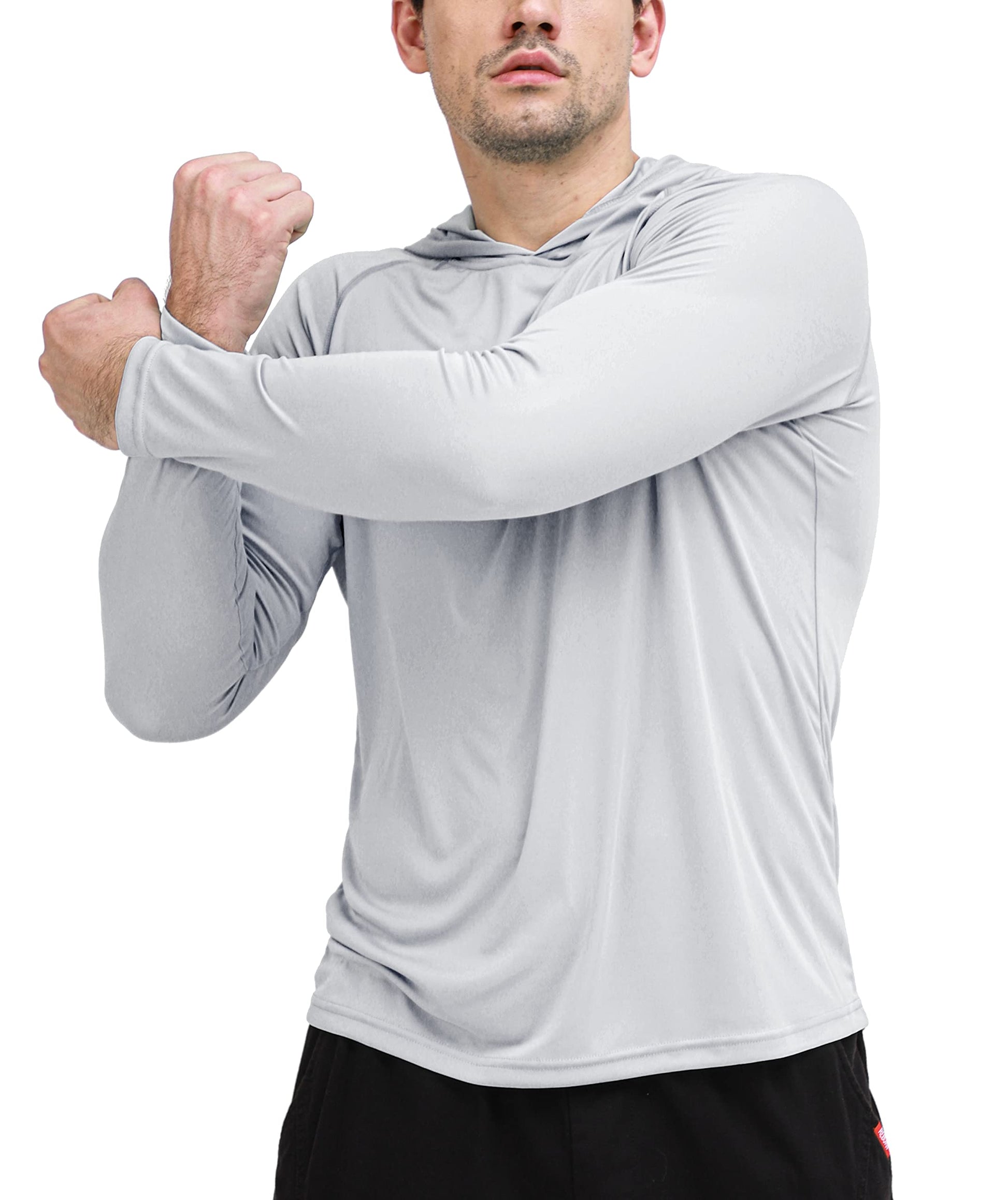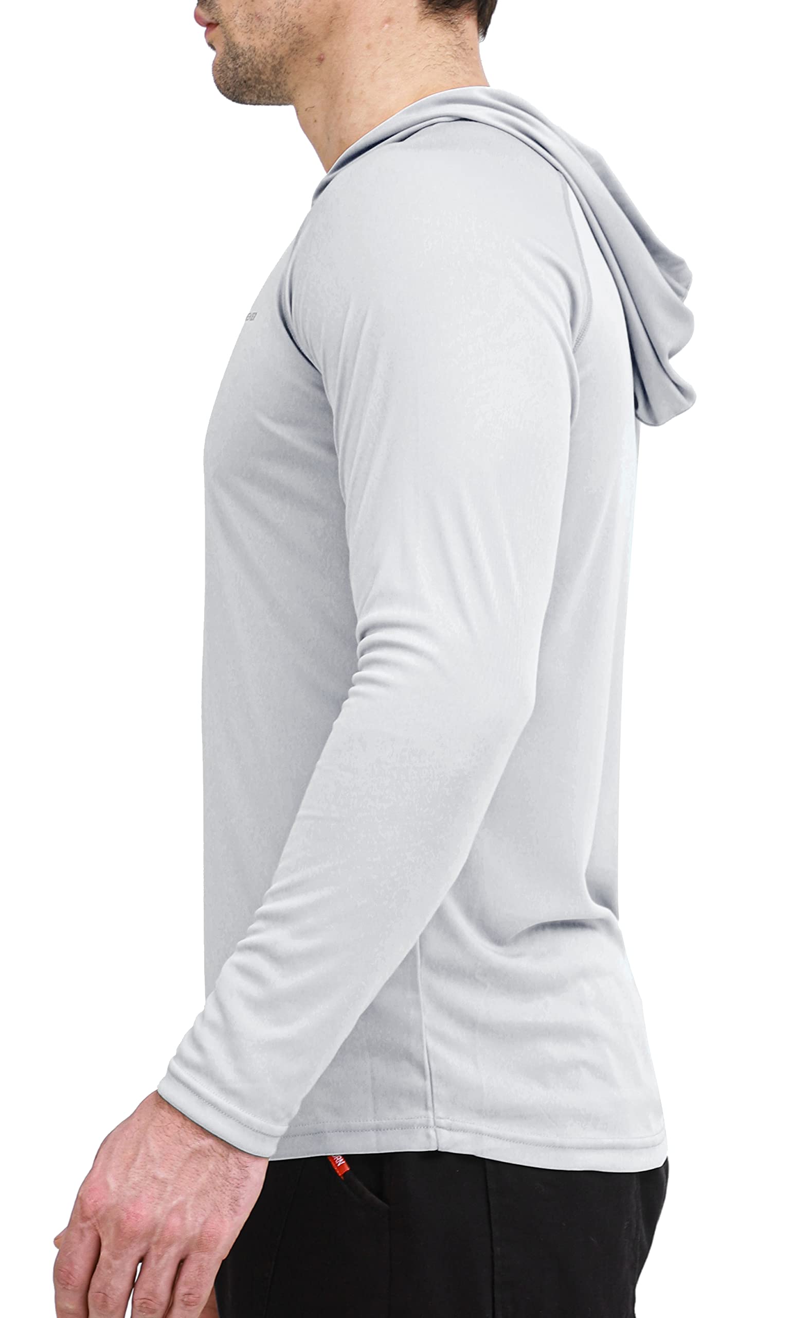 Men's UPF 50+ Sun Protection Hoodie Outdoor Long Sleeve T-Shirt for Running, Fishing, Hiking Grey