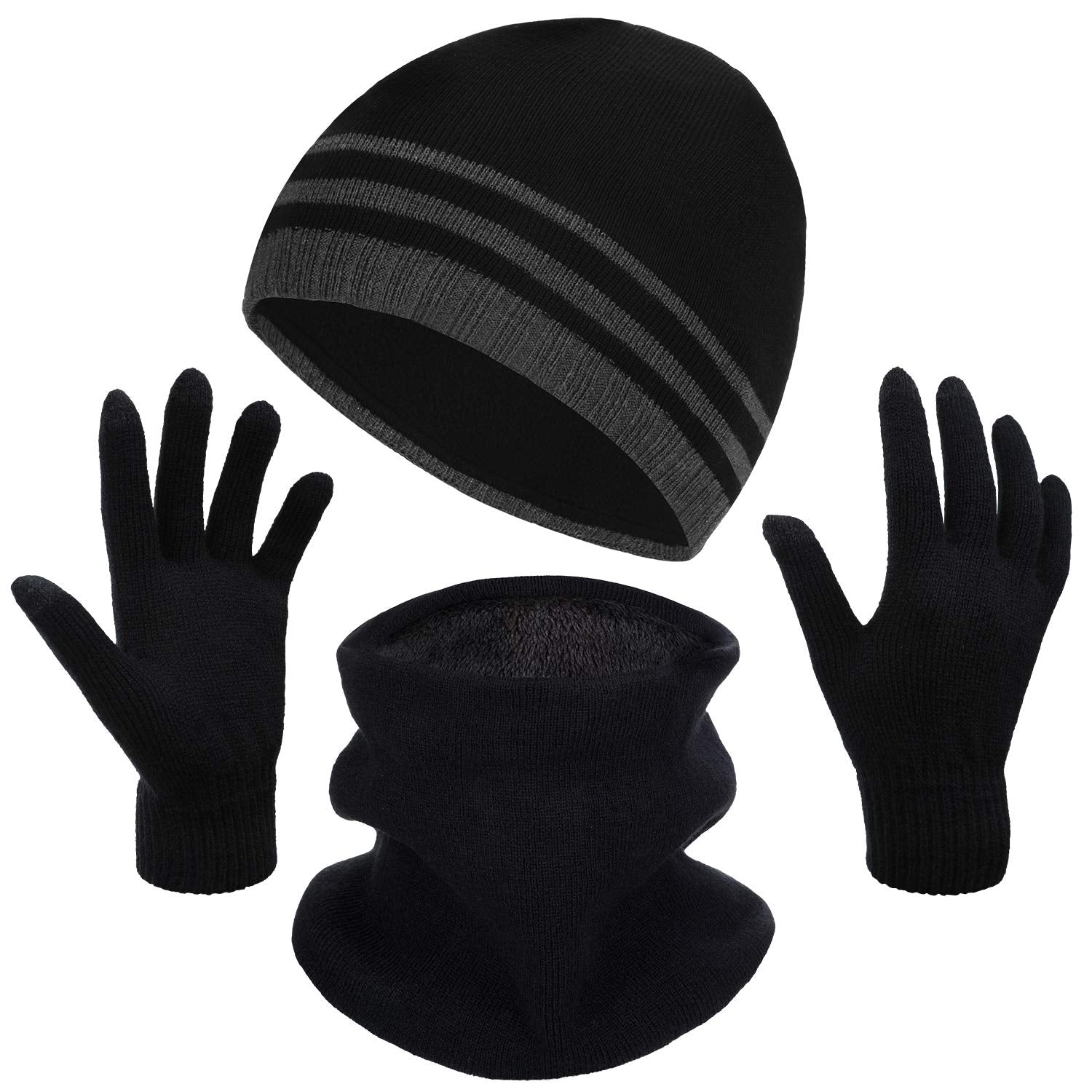 Men's Winter Beanie Hat, Warm Knit Scarf and Touch Screen Gloves Set, 3 Pieces (Black)
